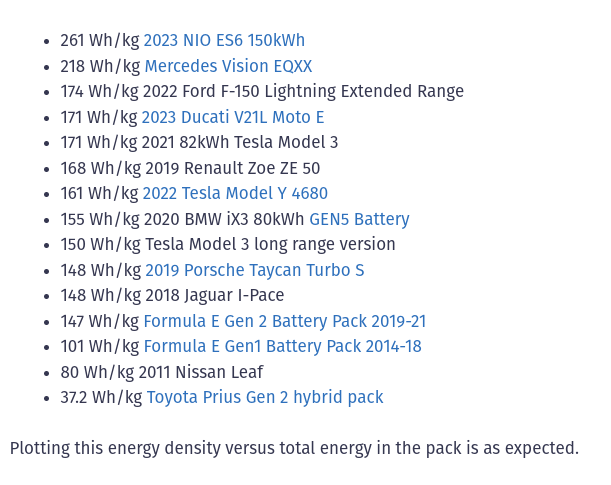 But all the above is pack weight, which is irrelevant if you aim to repackage cells. Packs vary in design a lot depending on their placement, structural application and cooling design, you'd be better off determining your desired capacity or the capacity you can accommodate in the battery pack space and then find cells to suit IMO.