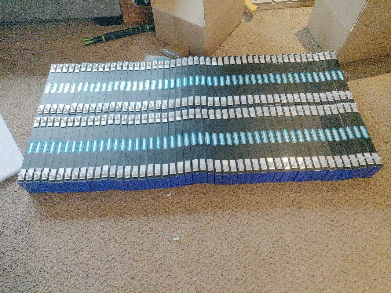 This is 2 rows with 32 batteries each. I have to add another row on top to have 96 batteries.