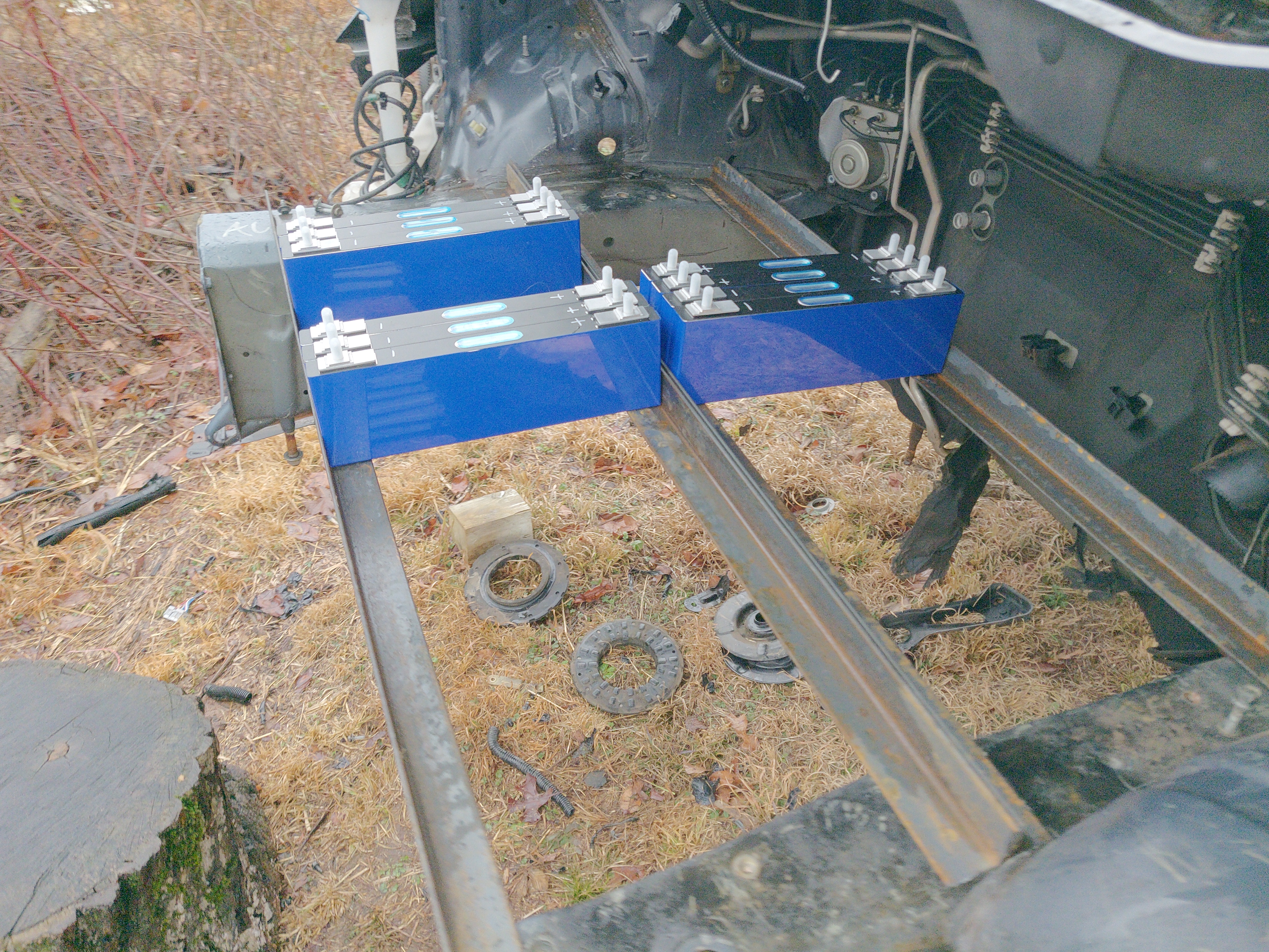 I decided that I just want to install the batteries in the front of the car. Because of that I cannot go with LiFePO4 and I need to go with NMC 3.7V cells. that will be 168Kg.
