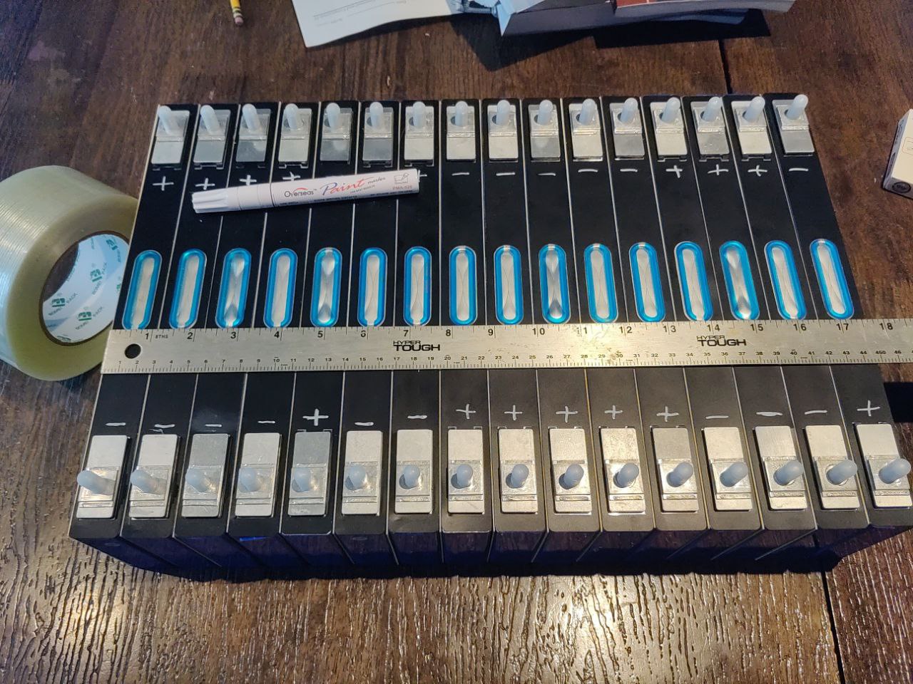 This is 2 rows with 32 batteries each. I have to add another row on top to have 96 batteries.
