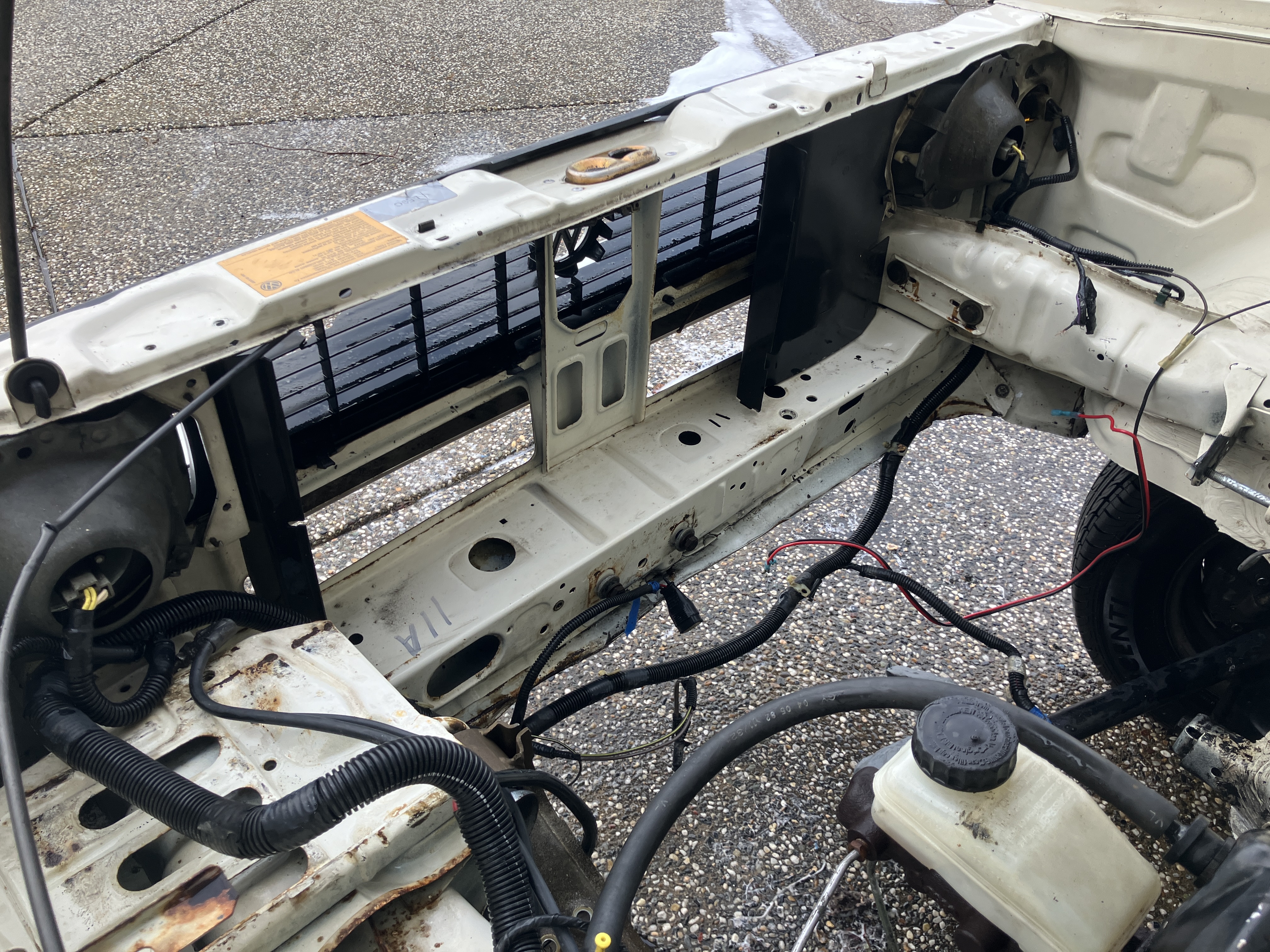 the stock radiator had to come out to make it easier to drop the engine later