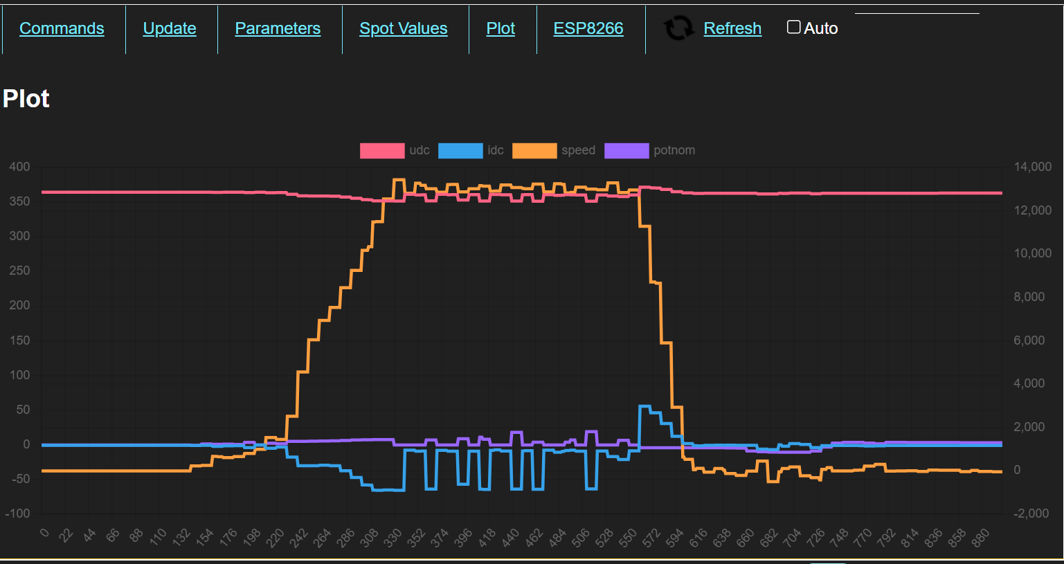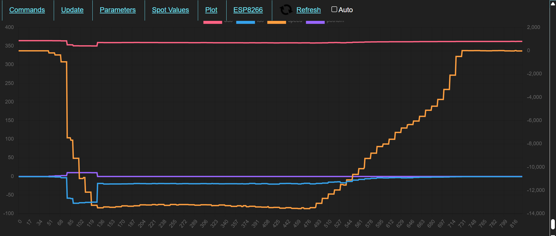 So there must be a current or power limit you are hitting a certain speed. Question is if its related to requested direction not too sure how to easily plot the driving in reverse and getting the 8K speed.