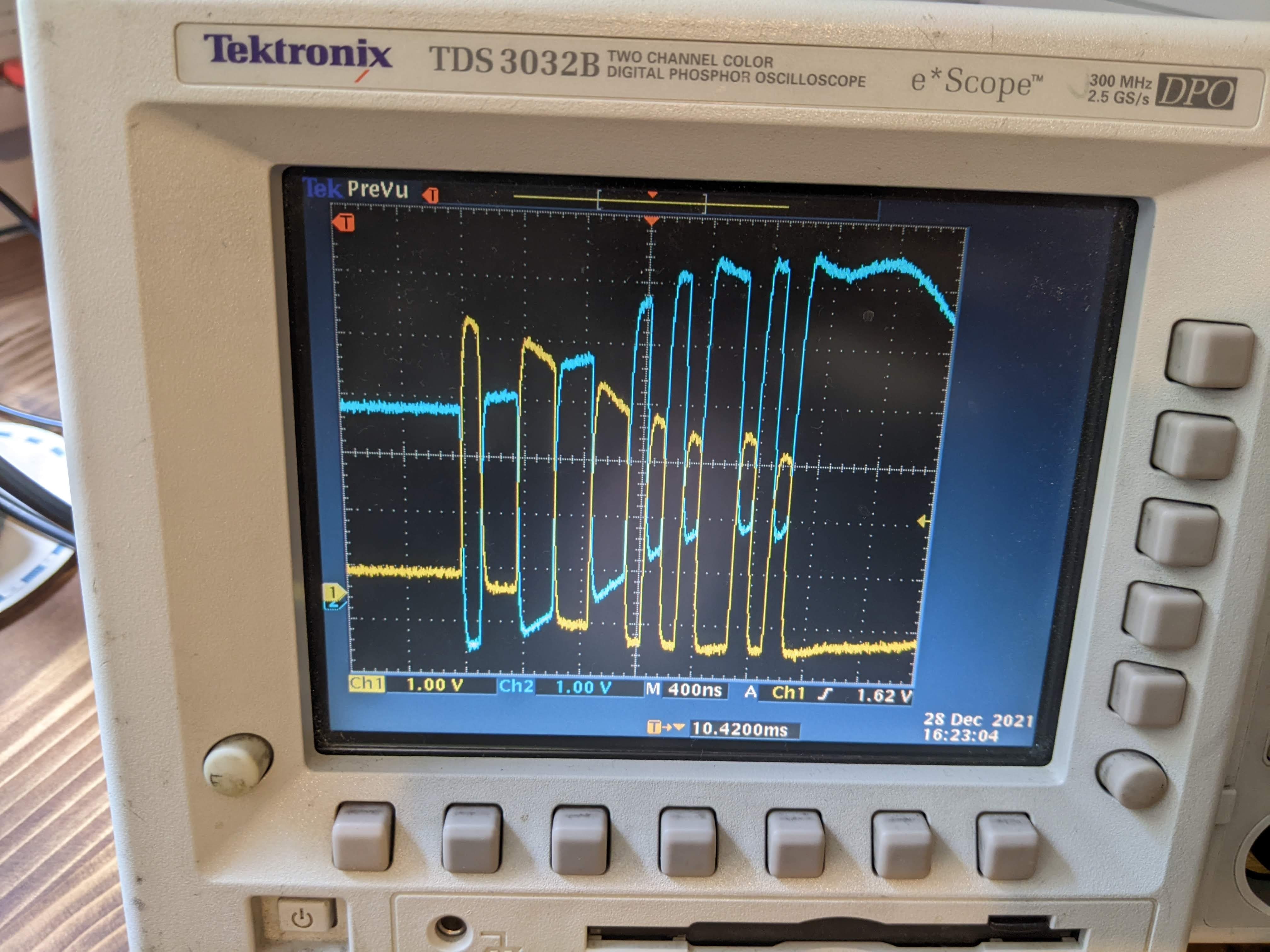 catphish wrote: Sat Jul 09, 2022 12:24 pm Waveforms as promised. Here's a capture of a multi-byte transmission followed by a single byte reception as seen at the differential receiver. The second capture is a close up of a received byte. The transforrmer is definitely making the pull resistors a lot more impactful, almost to the point where at the end of the byte the differential voltage is pretty small.