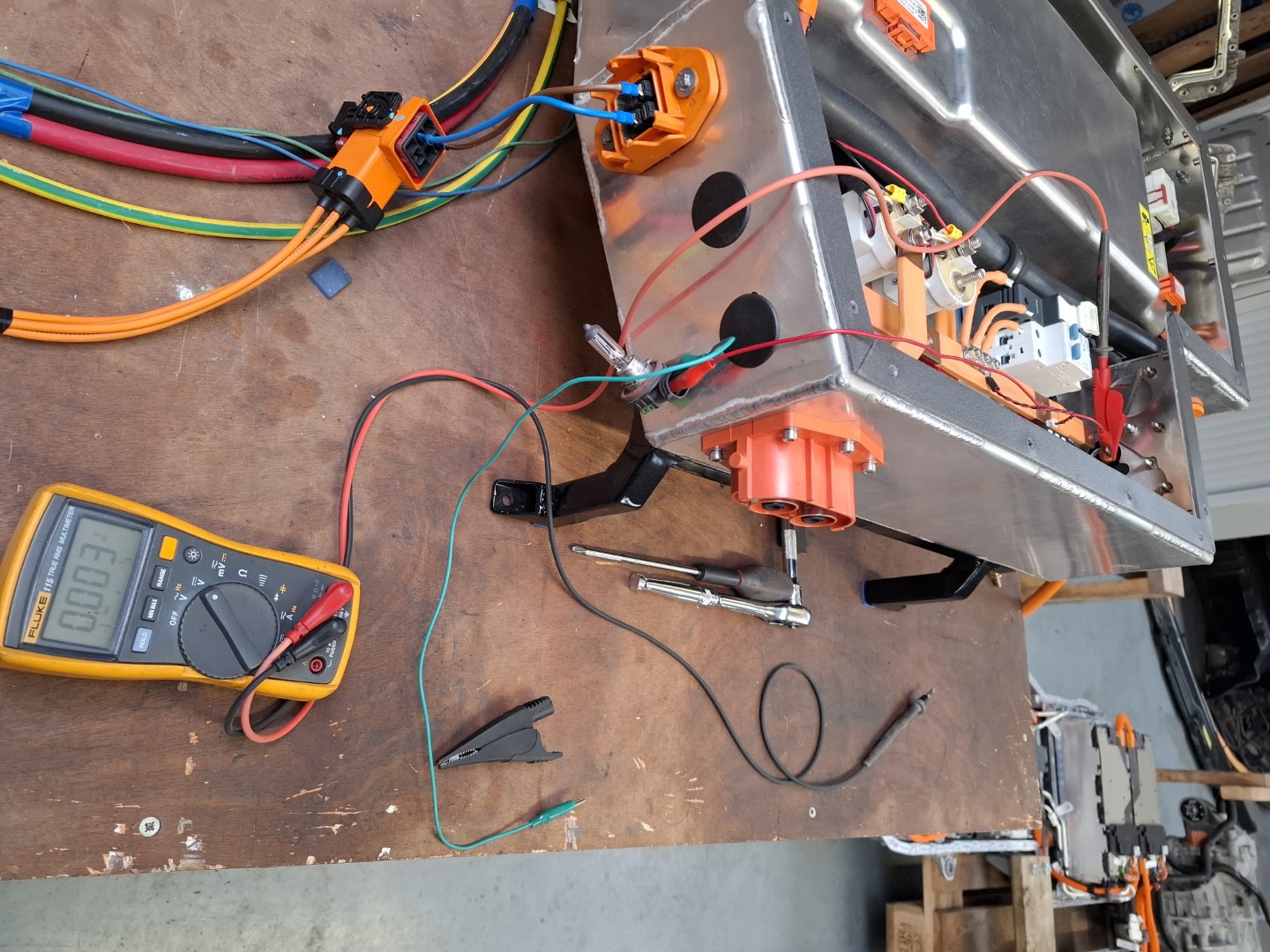 This will be used to test the Mitsubishi heater and A/C compressor, and have some Leaf stacks to test with a second Zombie vcu. It may make its way into this project for initial drive tests. I believe the SBox is fully integrated into the Zombie including shunt duties, which would be tidy. Although the SBox component ratings don't look like they'll suit something this heavy without limiting some parameters!