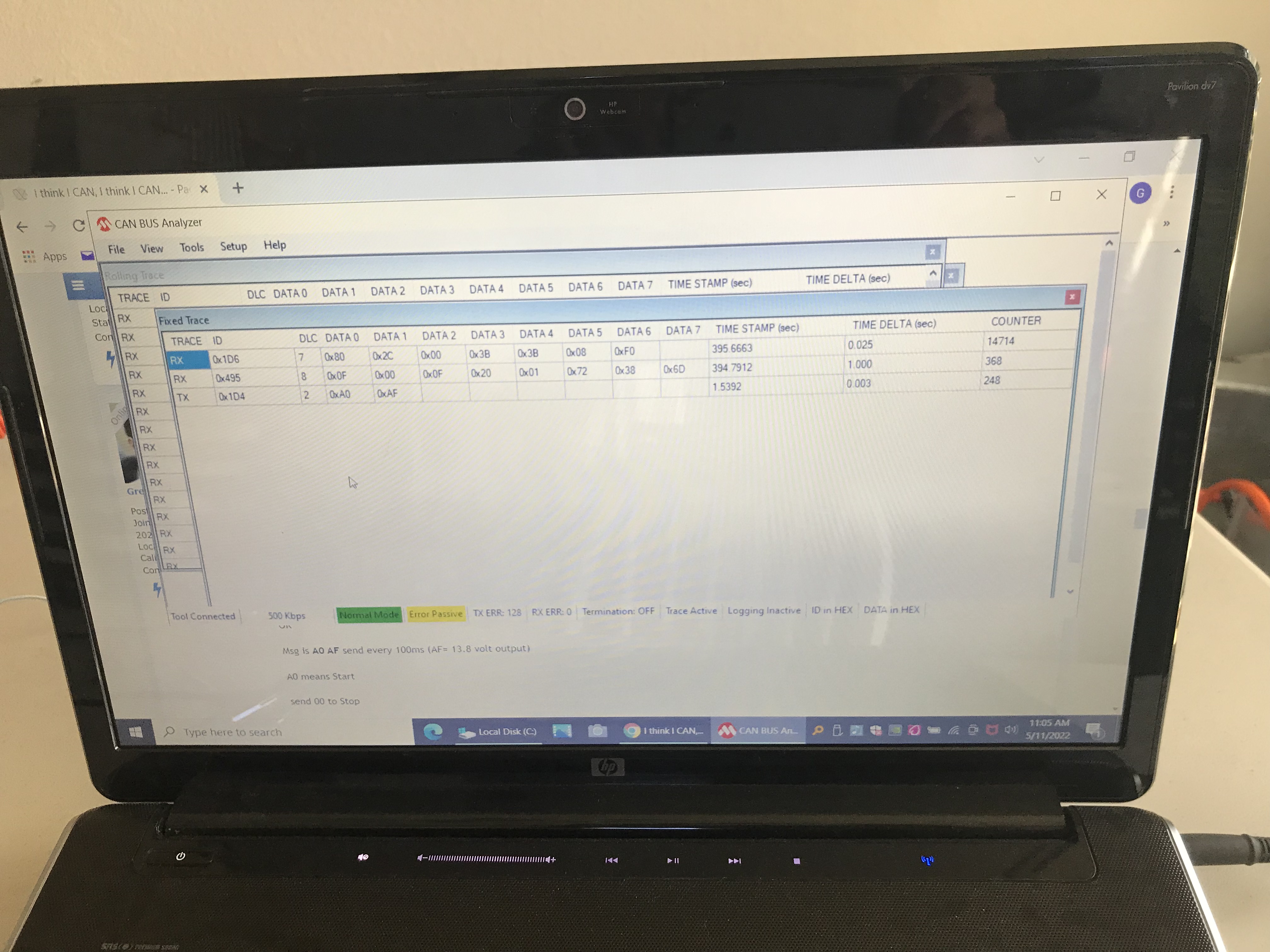 3. I commanded my Canalyst with ID 00 00 01 D4 msg A0 B2 at 100ms
