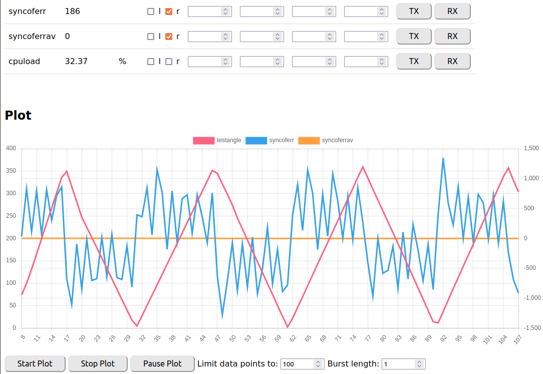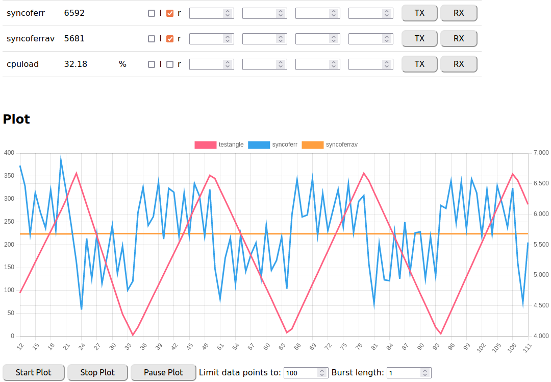 Worth noting that syncoferr is always reported as a signed number (to stop errors around 0 causing the plot range to go from 0 to 65535) while syncoferrav is always reported as an unsigned number so that it is easy to use it to set syncofs. Not quite intuitive (especially if syncoferr is negative) but it seems to be the best compromise.