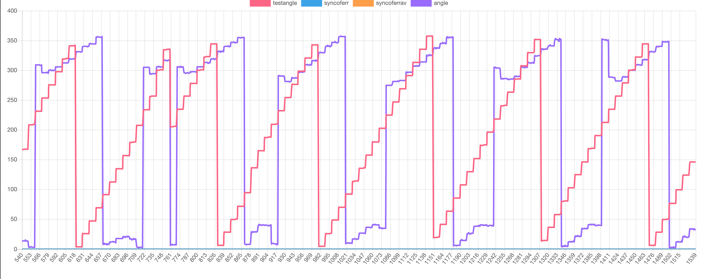 This is the result with syncofs set to 0: after it's run for a few motor cycles the value of syncoferrav is the value that should be written to syncofs (as long as syncofs was previously 0), in this case 5681.