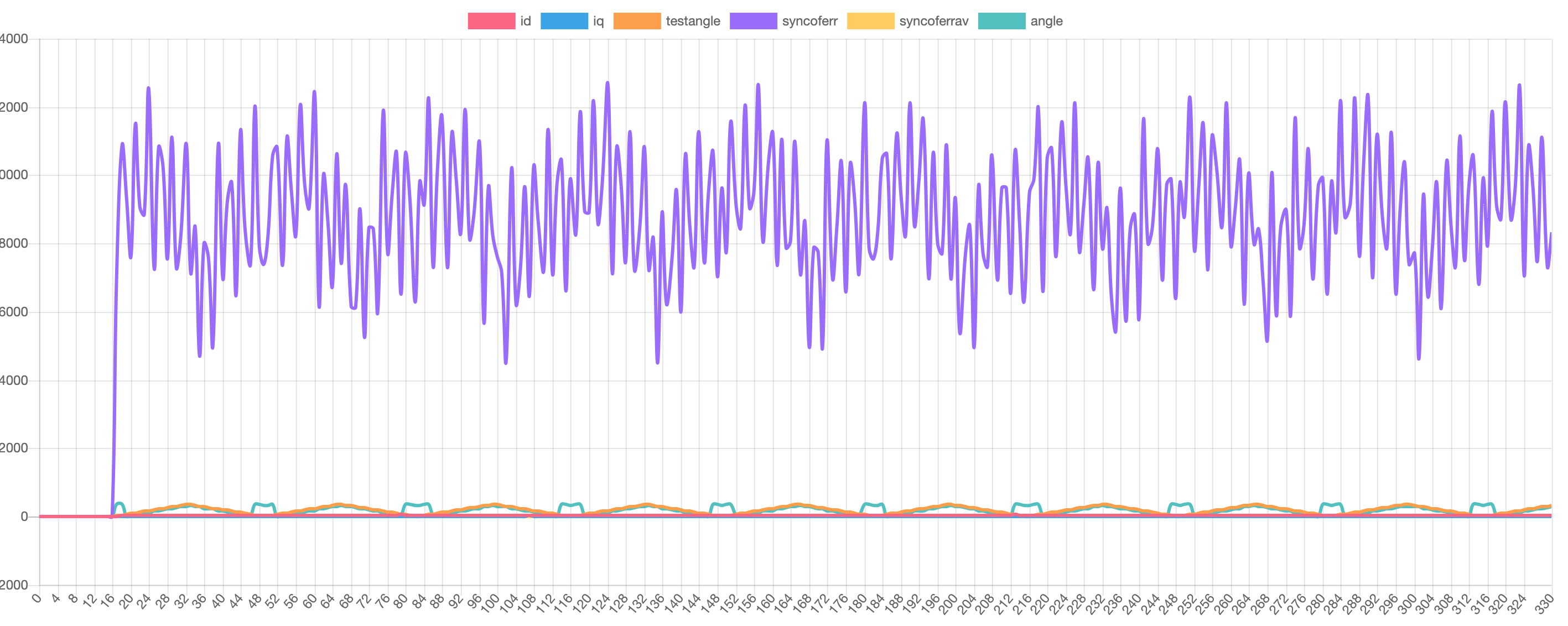 Just done the sync error bit on the F405 (as that's what I can test here), results look ok. This is what a plot looks like with syncofs set to 0: You can see the average value of the syncoferror is around 5800. If this value is then written to the syncofs parameter you then get: So an average error of 0 (allowing for the offset due to rotor drag/id only drive in each direction).