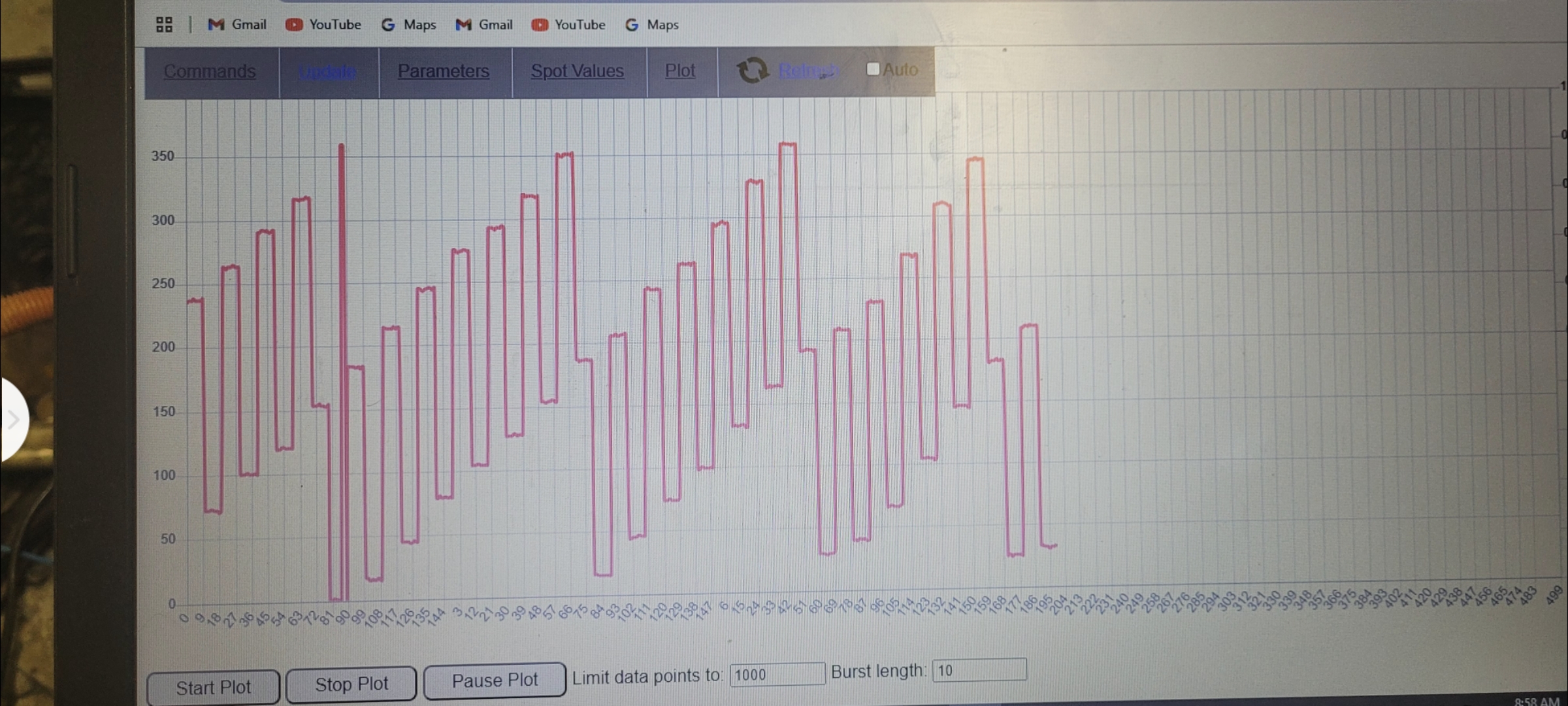 I tried following Damien tutorials from the video but as soon as I set udcsw to 0 like Damien did. The three light bulbs connected at the phase output of the motor all lit up and didn't blink like they used to when testing before, aswell as the 55w light bulb connected in series on the Positive line of the HV battery.