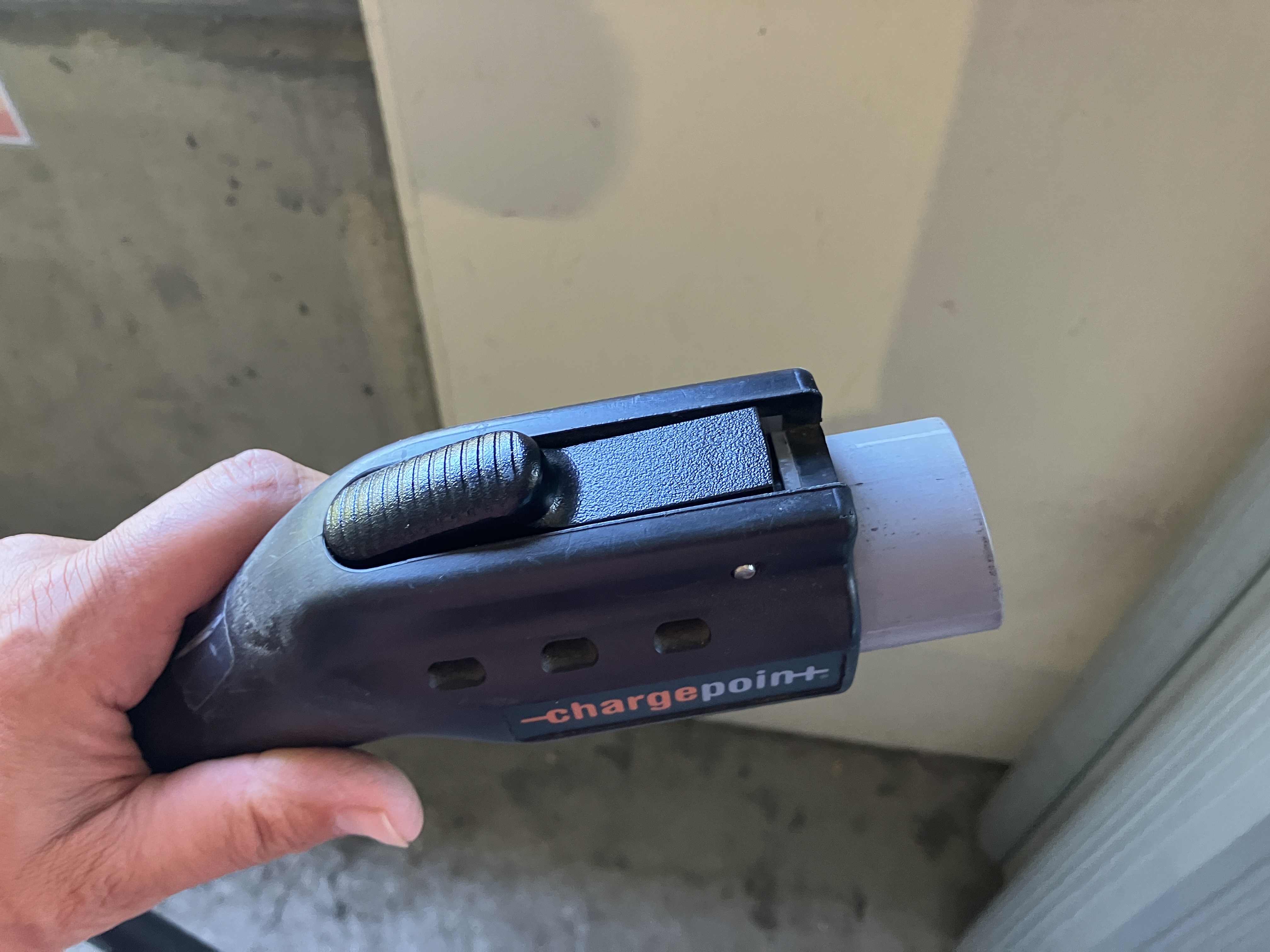 this part really pisses me off, the broken click click clip on the handle, and the problem is this station had two handles on it an A and B if you will and this is the A one and it was the broken one so any time I wanted to charge it offered this one ie unlocked it for me, well my truck would not recognize it since it would never clip in, so I had to lay this A handle on the ground and trick the station into thinking it was in use for it to unlock the B handle, Science People, science !