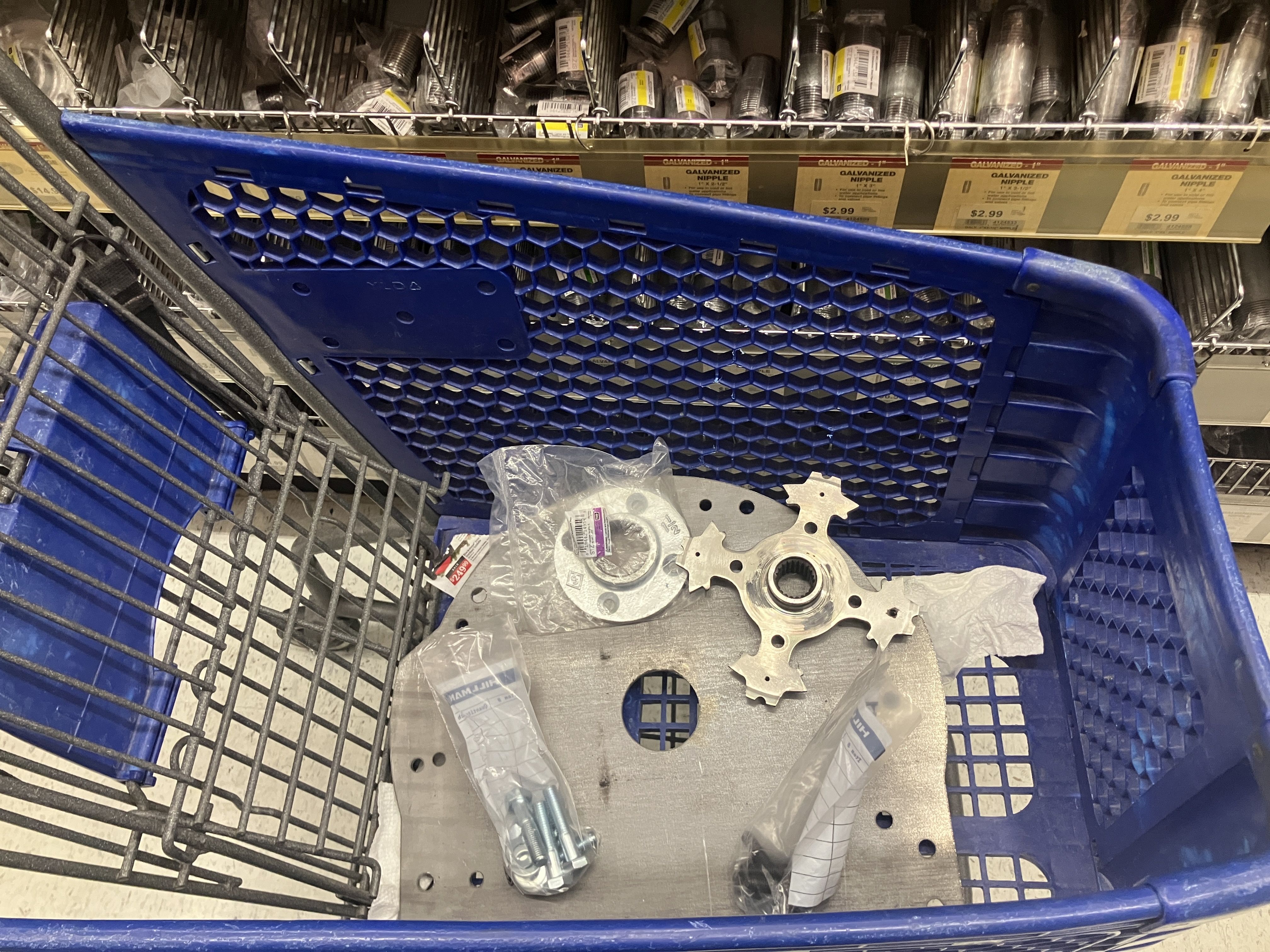 after one too many sleepless nights The Greg made some significant progress on Rev. 2.0 of our input shaft mechanism, using this handy LDR 311 F-112 Galvanized Floor Flange, 1-1/2-Inch, complements of our friends in Vietnam, or as I like to call it the Lexus GS450h transmission plate too big of a hole reducer thingie