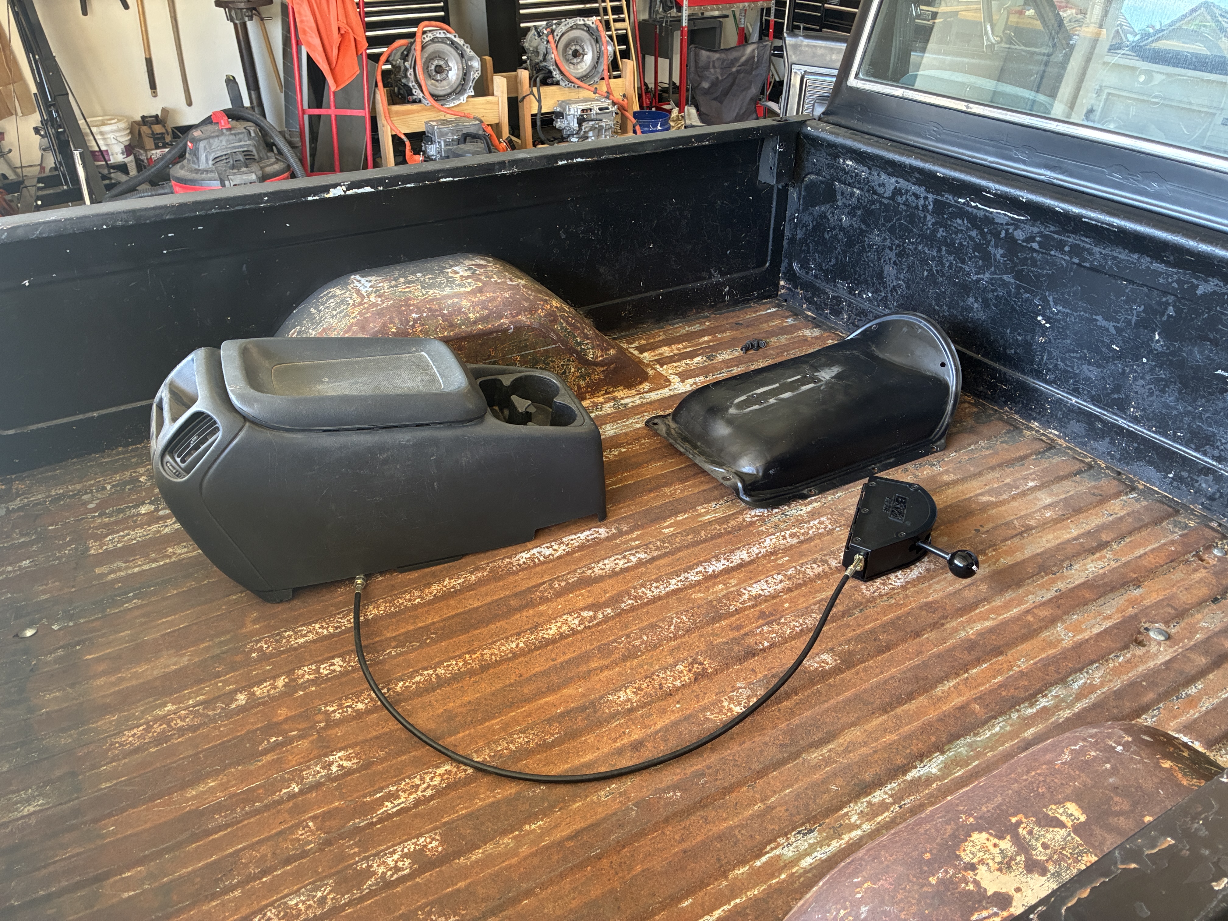 it's a crude setup but it demonstrates how far back the actual floor shifter sits behind the transmission, fine in a car, not so fine in a truck, or is it?