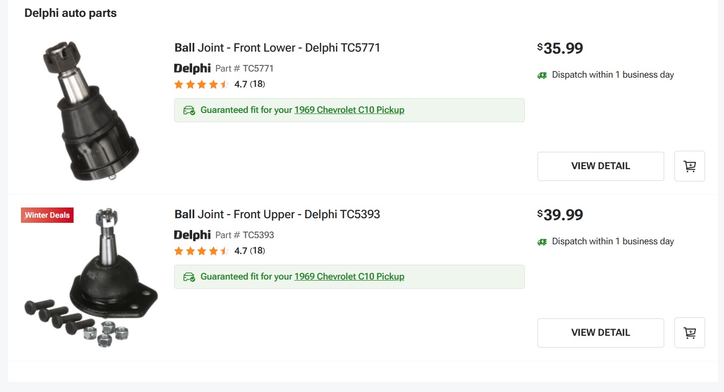 You can see the metal surface finish quality difference of the Moog vs the Delphi. Delphi is the easy choice. I'm confident the boots on the Delphi's will be better too.