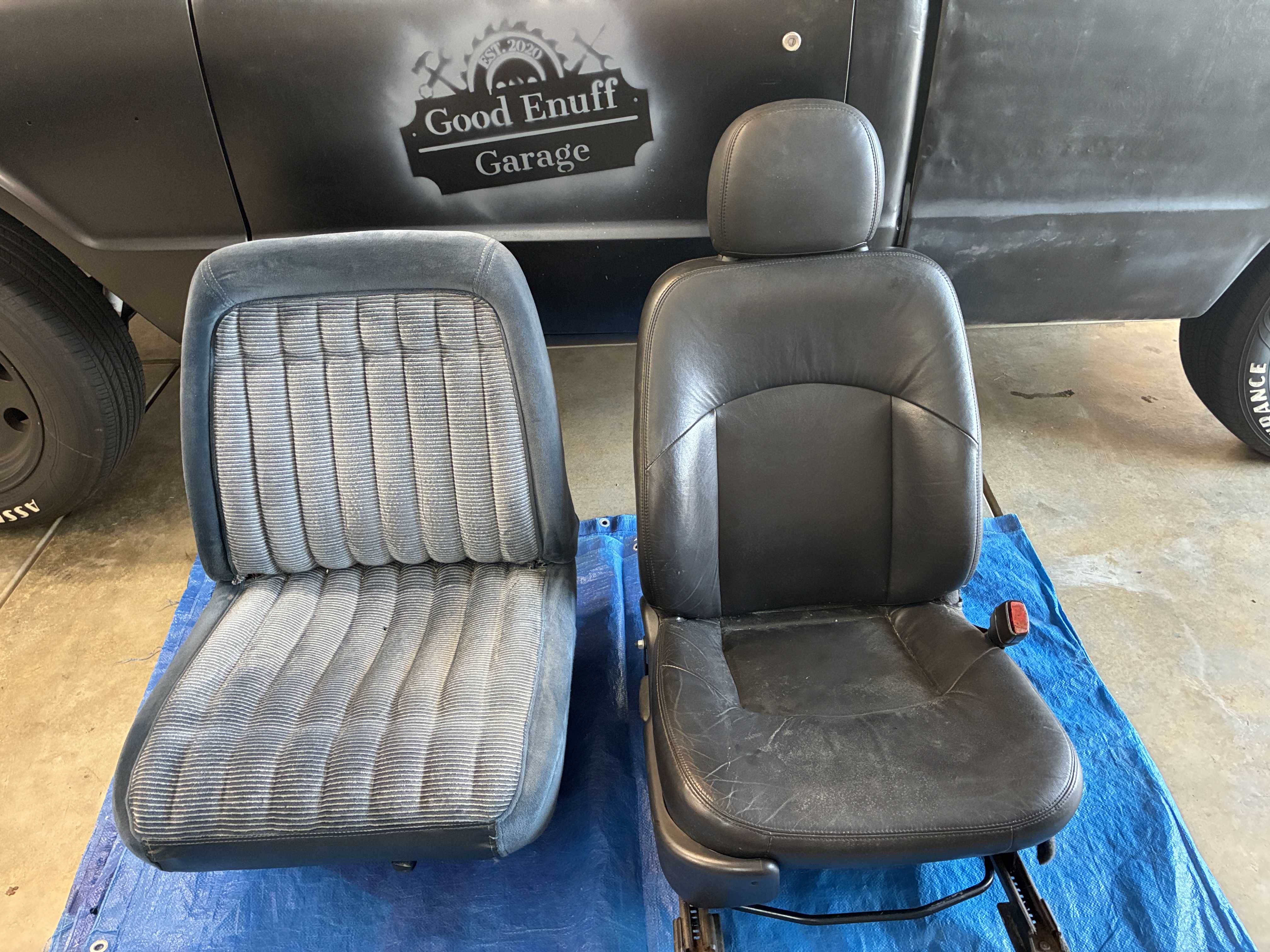 I was recently quoted $1,200 American dollars each to upholster my Smurf bucket seats, (I paid $600 total to have the exact pair done prior to Crowvid) so I went fishing for sum seats at Pick N Pull (pronounced my backyard)