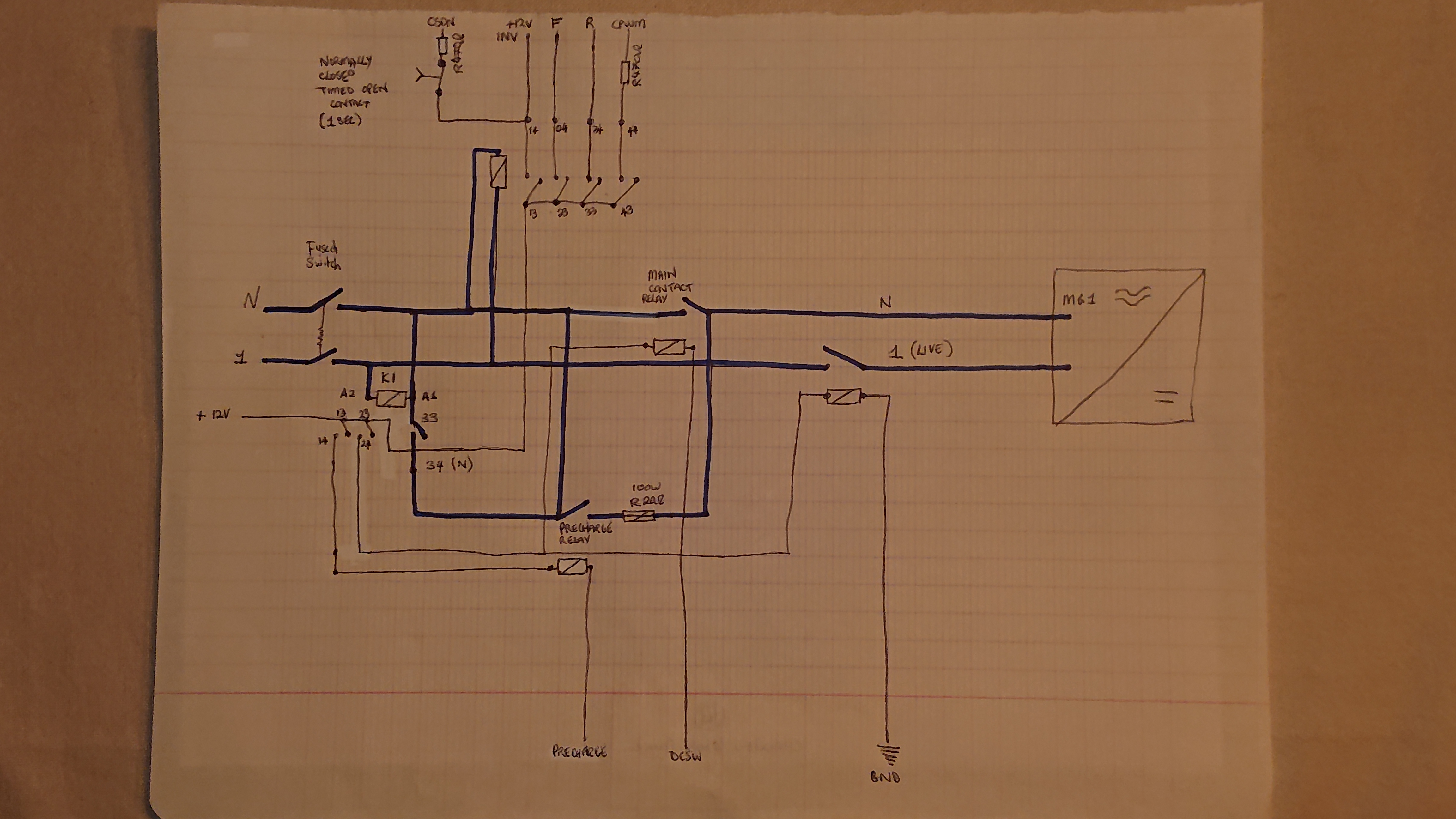Next step is to add the additional contactor so I can split the battery positive to the inverter. The charge contactor to battery inputs will be activated by the same signal as the AC contactor, then my main contactor will connect to the HV bus and run as normal.