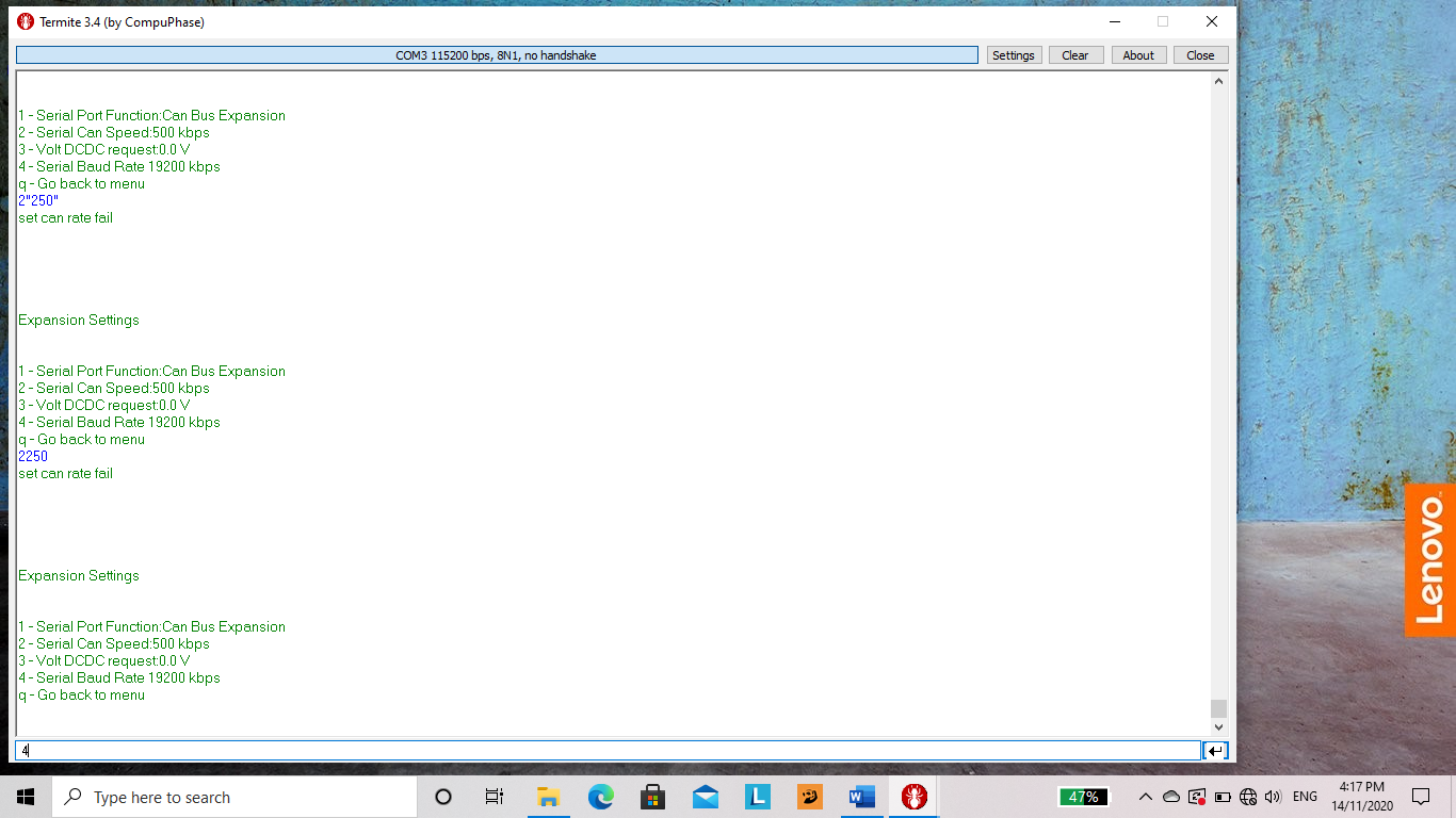 Good news Tom, This morning I've plugged the CAN module into a serial adaptor and I was able to change the baud rate to 250kbps, I was then able to change the expansion setting in the serial terminal to 250kbps. Connected it all up and it's happily charging👍 Thanks for your help
