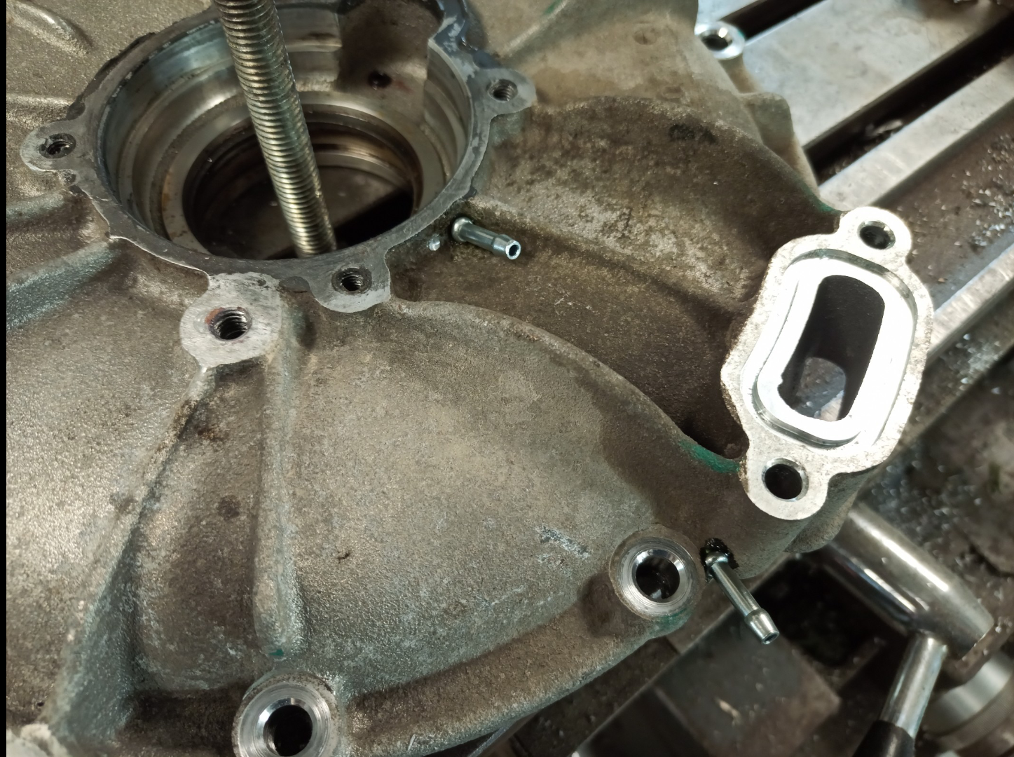 He also tapped a drain in the tunnel (need to take a closer look), bottom of motor cavity end plate and reluctor chamber of course.