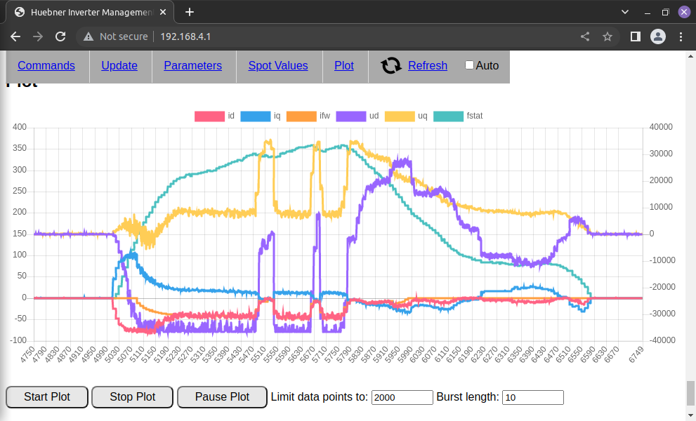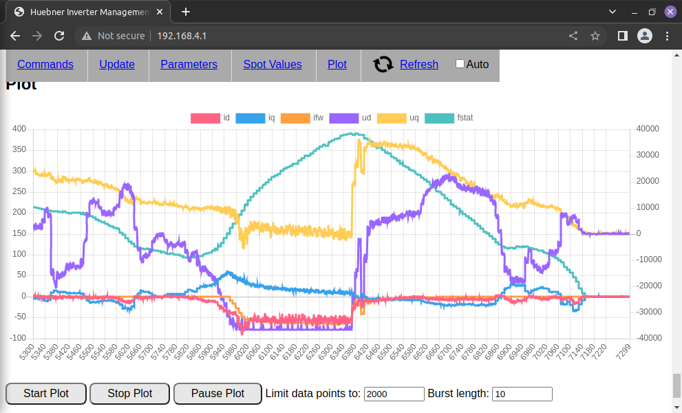 I'm wondering whether it is possible to calculate Ld and Lq from your plots too. What's needed is a step change in throttle below FW, from the change in Iq and Id and the corresponding change in Vd and Vq it should be possible to work them out. There is a bit towards the end of one plot that might do so Ill try to have a look later today.