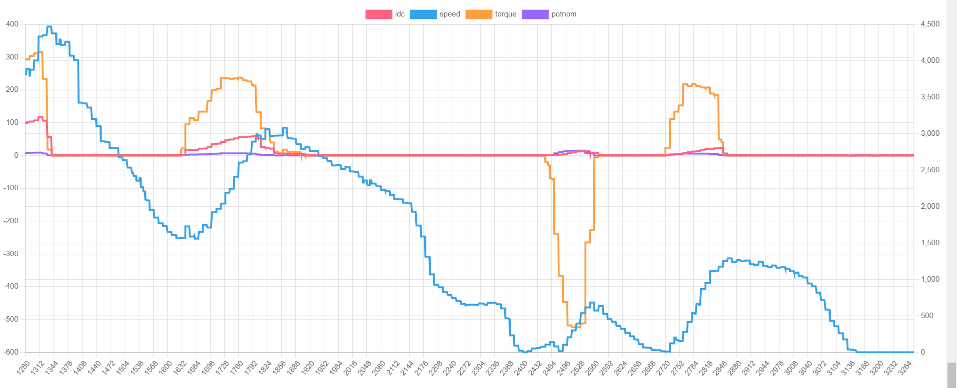 it is still very clear there is a bit of lag from potnom/torque request to when it pulls current.