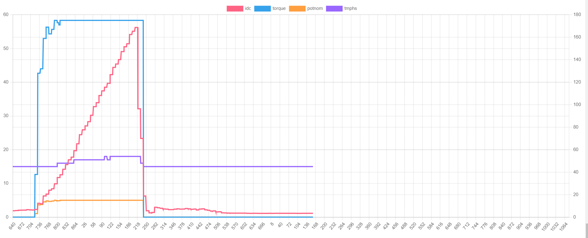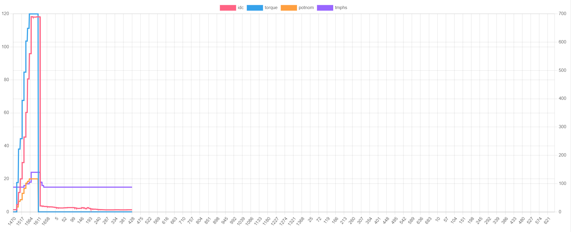 Note how in the 2nd to last plot, your "torque" request jumps but IDC does not increase this possibly highlights the fact that the command being sent is not fully correct.