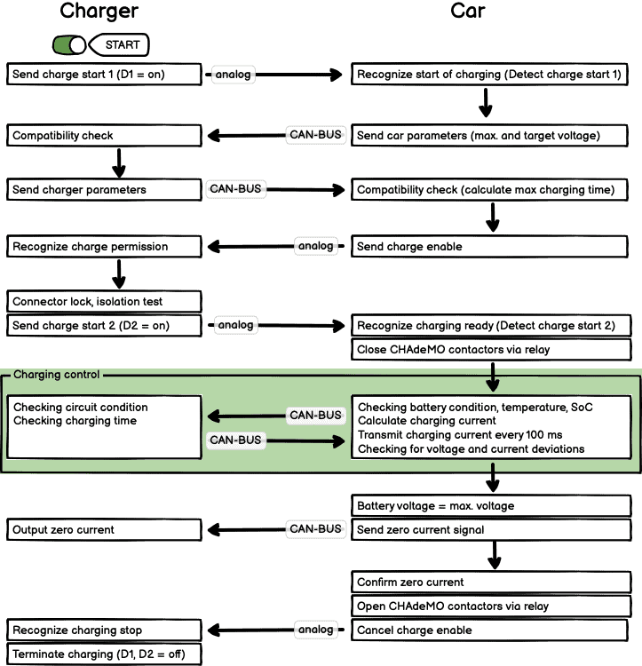 I've found a flow diagram to follow https://www.evcreate.nl/chademo-fast-charging-in-diy/