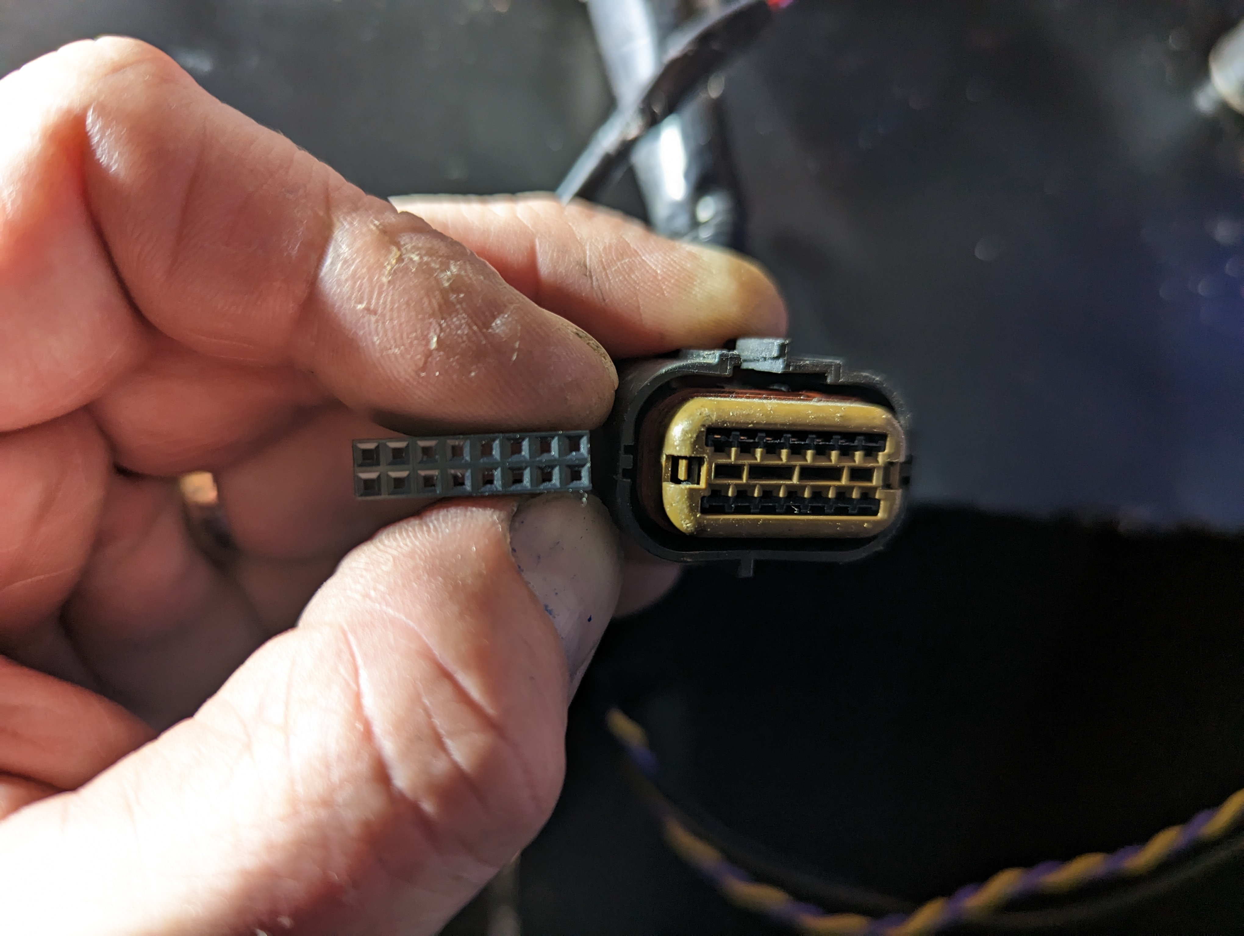 The attached STL works for both the Vehicle connector and the Motor connector of the rear inverter and thus also on the motor. Will be working on making the print better to eventually include a seal and allow for potting the wires.
