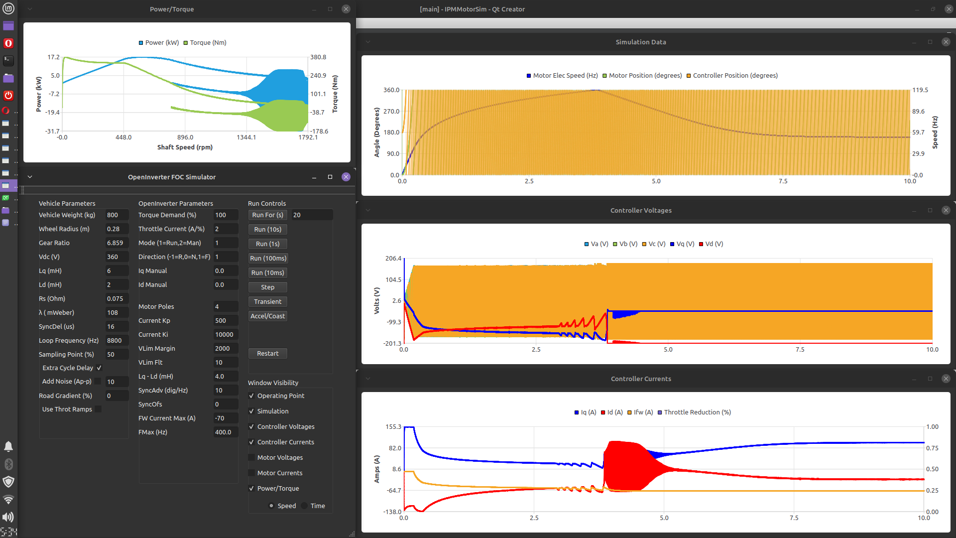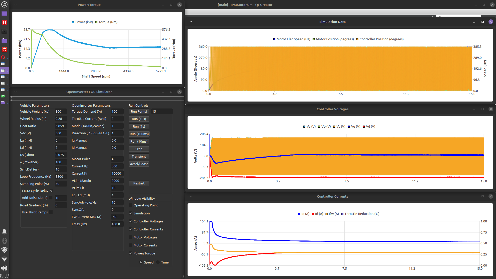 For now revert all the settings in the param_prj.h file to the ones that that come with the one simulator repository https://github.com/Pete9008/IPMMotorSim ... aram_prj.h and just change the ones that appear in the sim's gui to match you car's param_prj file. That should work well in the simulator but still default to your motor parameters. I'll update the documentation to reflect this. Sorry about not being clearer on modifying the param file before, this could explain both your and Ev8's problems.