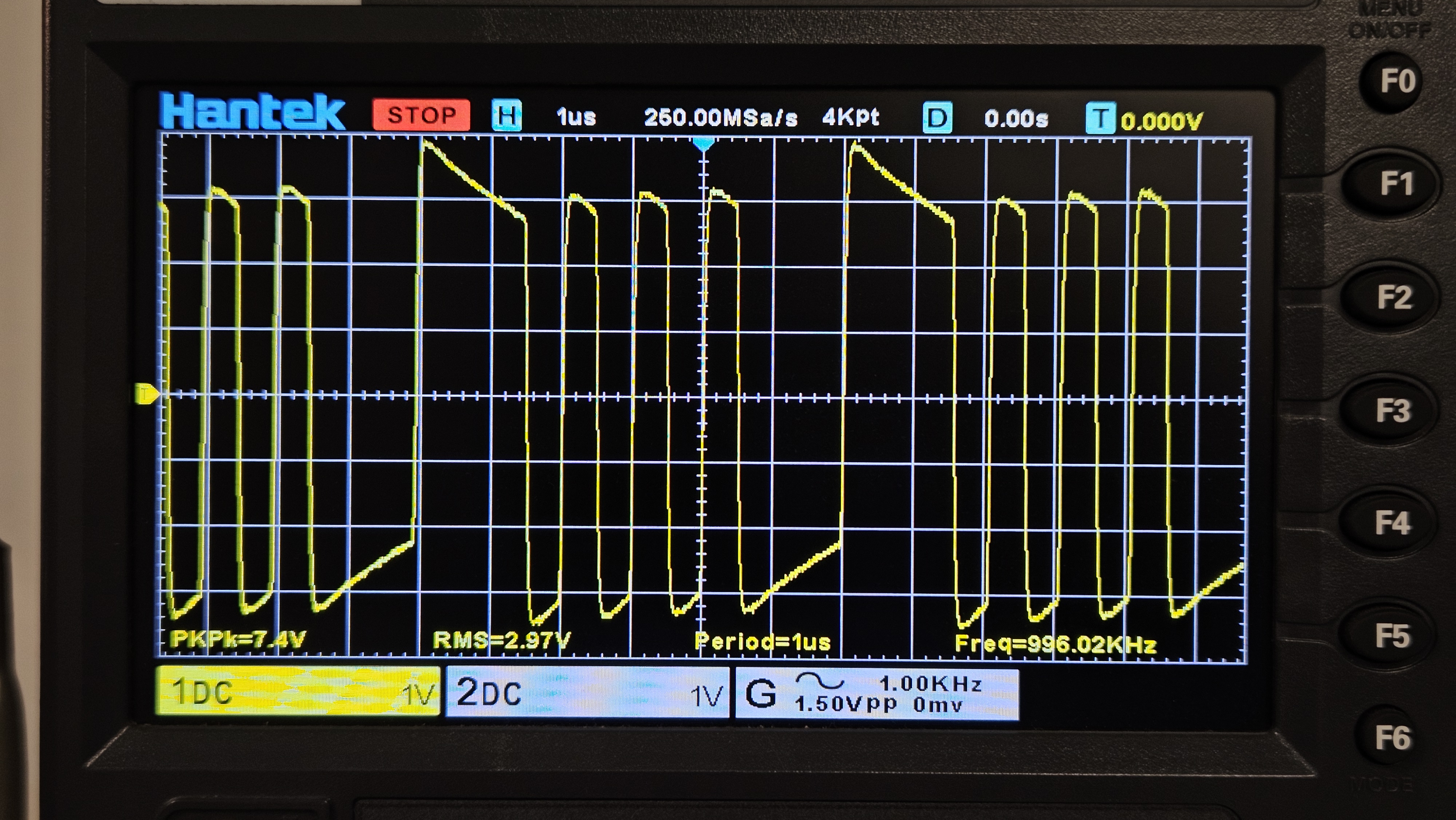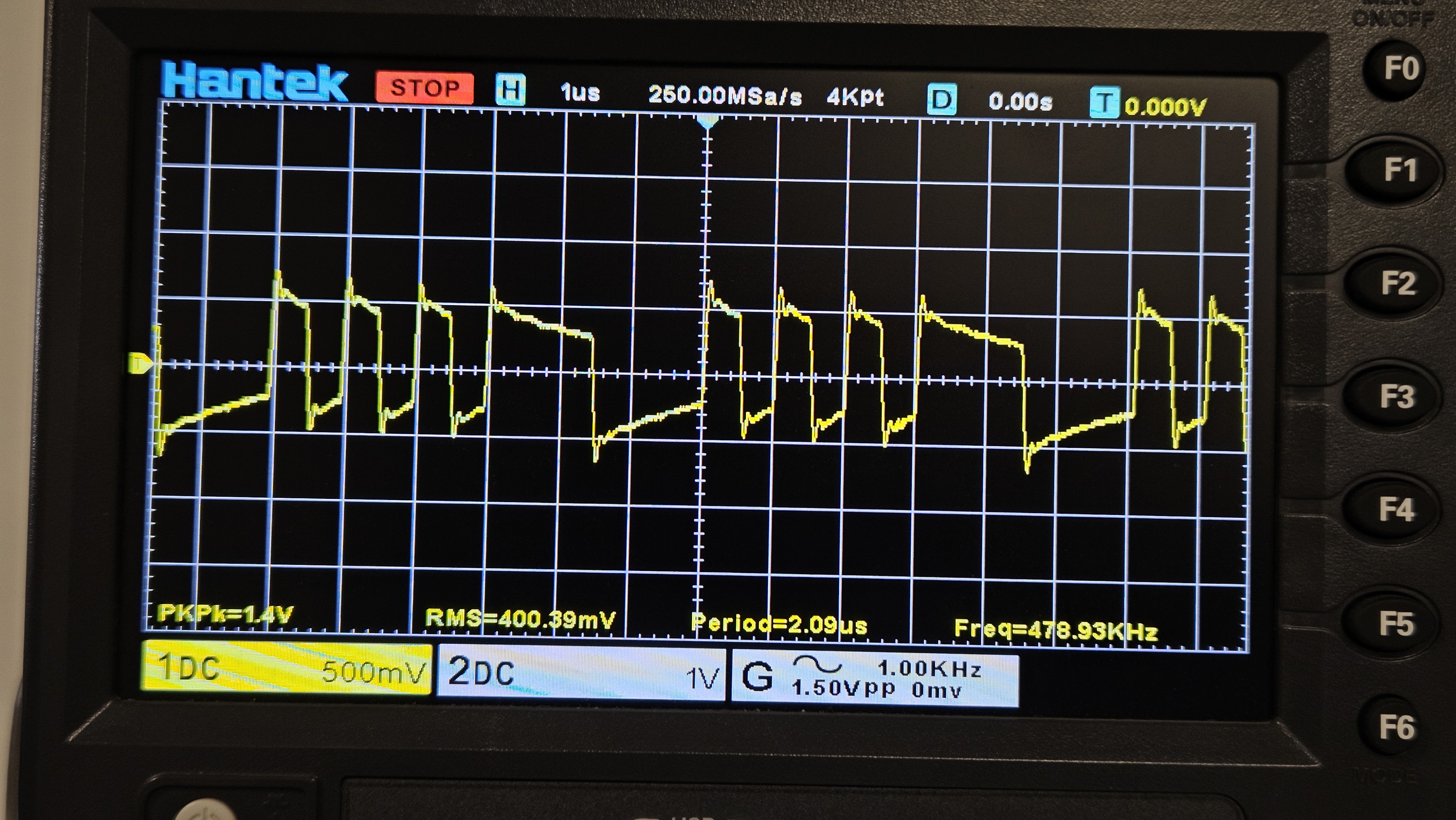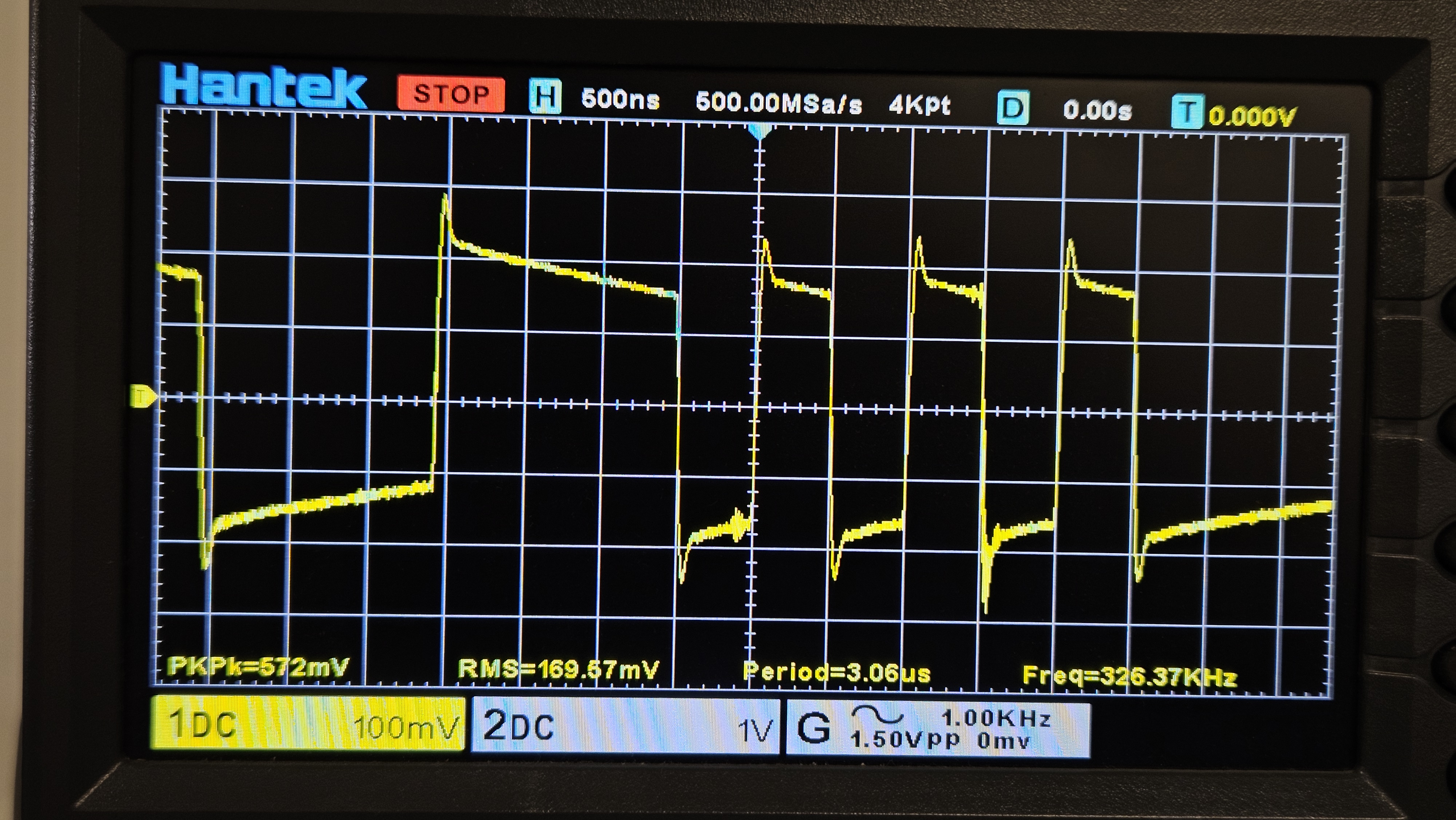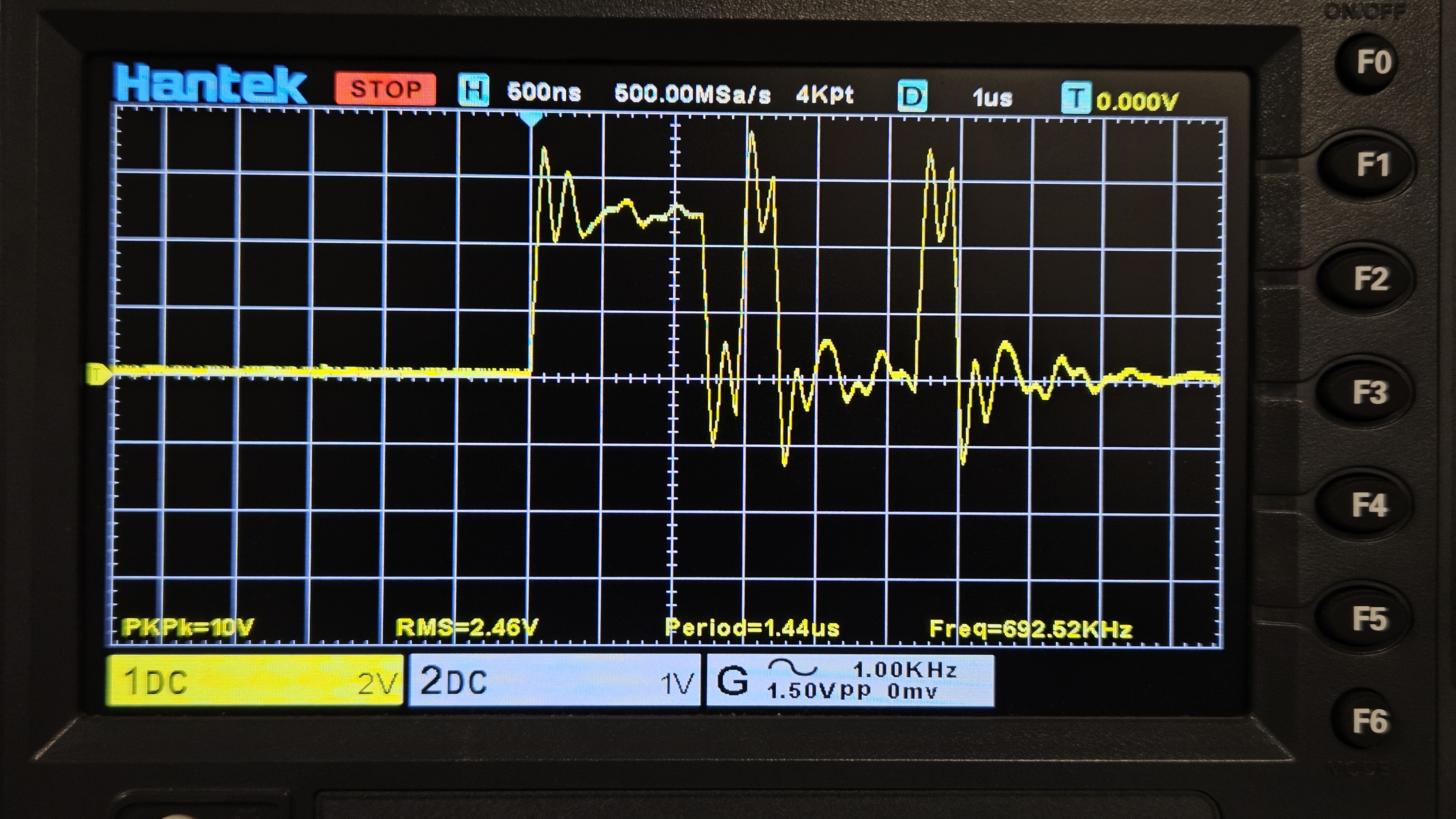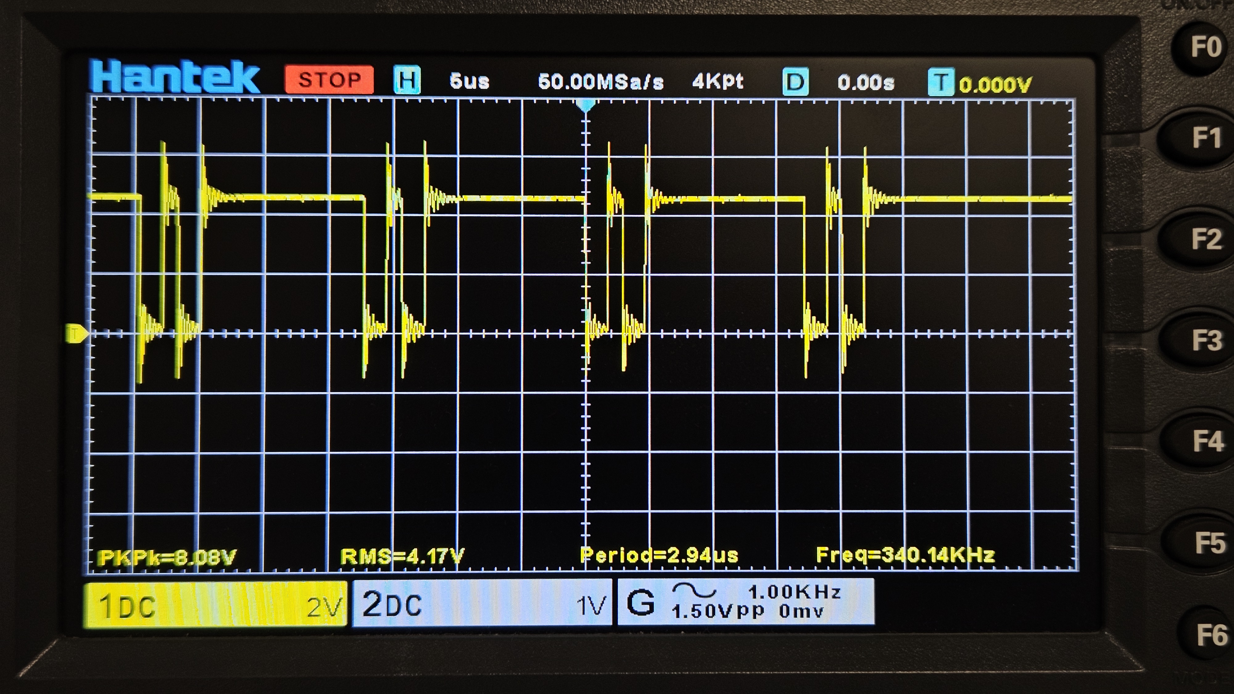 I also found out that my oscilloscope has a dirty GND and that's why im seeing a 50Hz frequency in my signals, so I don't know how reliable the scopes are that I made.