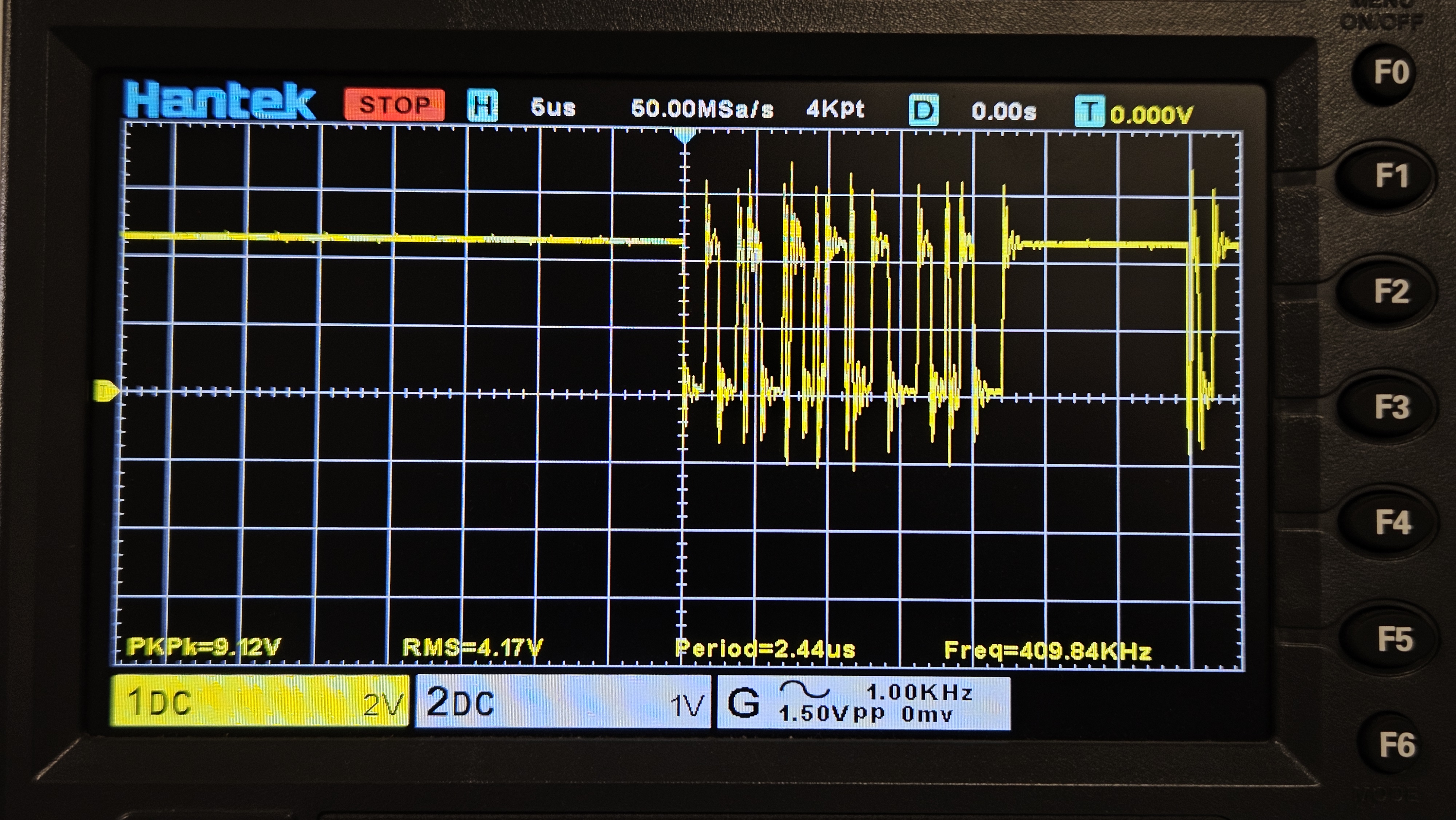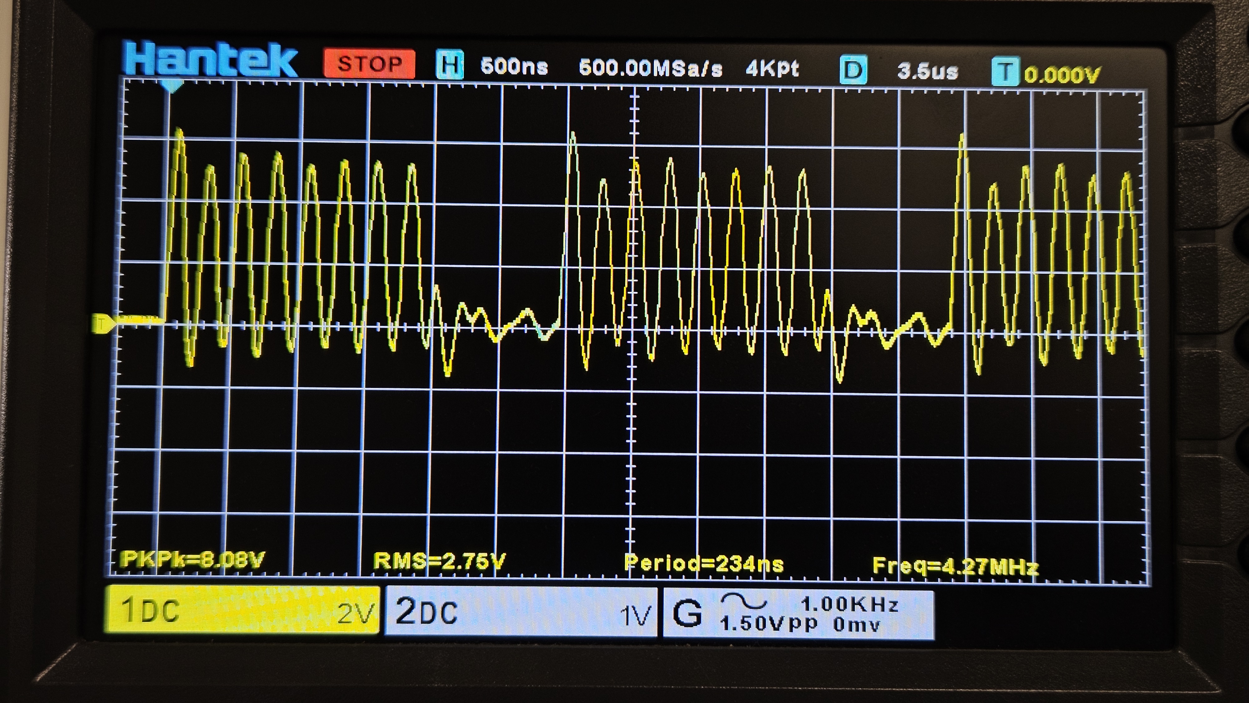 Image 1 (BMS): Connected GND clip of probe to TXN and probe on TXP after transformers on my BMS. Max ampl. +4V and -3.5V