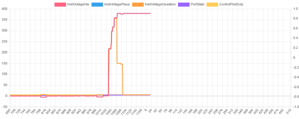 InletVoltageHw and EvsePresentVoltage? They shall be nearly the same.