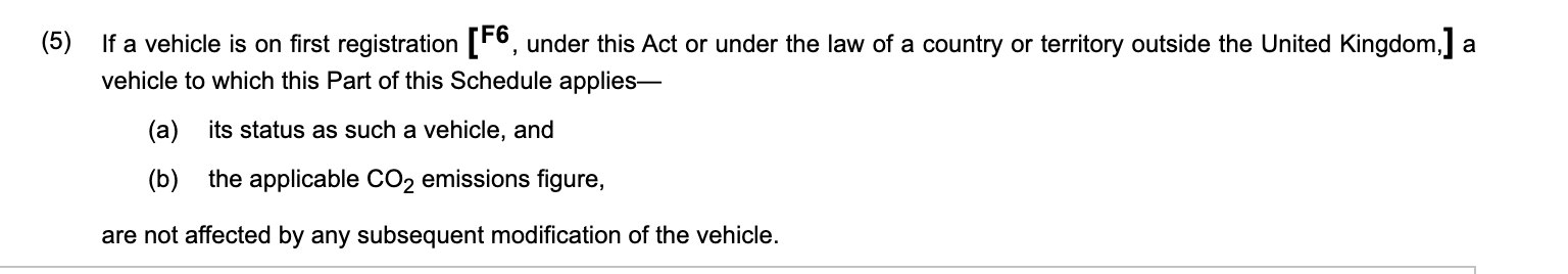 Since an ICE powered car is NOT an 'exempt vehicle', it IS then covered by Schedule 1 and hence cannot have its original emissions figure changed. A restriction I completely understand as that would open the door to anyone claiming their car now produced fewer emissions and they should pay less VED. That would be IMPOSSIBLE for them to implement. However, it was clearly never meant to prevent a car being converted to electric propulsion, hence becoming an 'exempt vehicle' and thereby NOT subject to Schedule 1 at all and that whole "cannot change emissions" statement is rendered irrelevant.