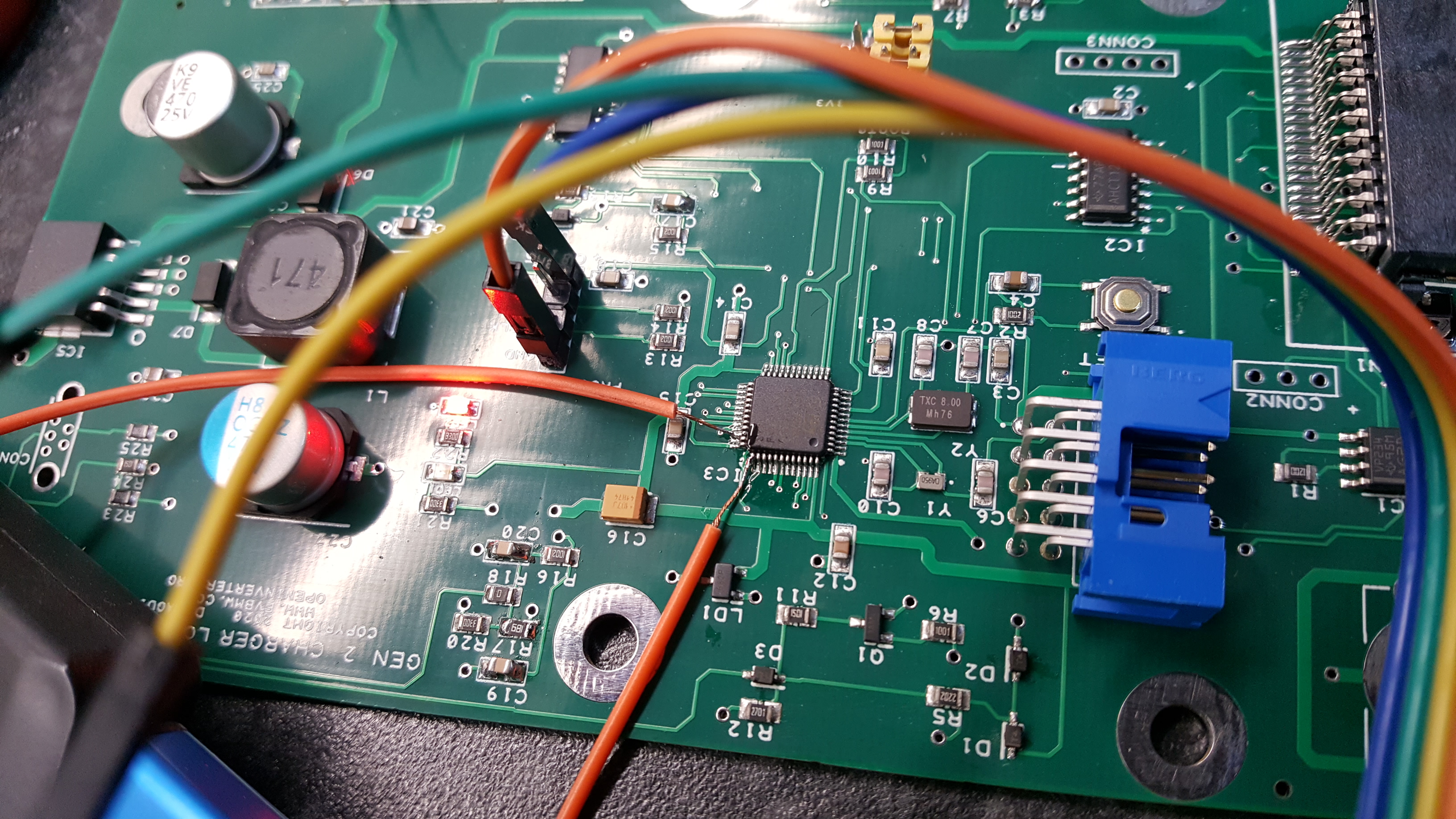 Kinda bad news on the charger board. I done screwed up. Connected the SWD port to the wrong pins on the micro! Fortunately, a misspent youth of chipping playstations allowed me to connect to the right pins and upload the inverter bootloader and test program. CAN and IO are working but will need to re layout the board to correct this and some other errors. Not disappointed as this was my first go at using the STM32F103C8T6 and also first JLC board. I'll be putting up a new thread soon for software developement on the new board which will be a nice comedy show as I get to grips with C++ and STM32