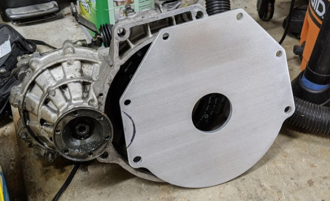 Why do I have 2 adapter plates you ask? because i have to offset the transmission from the Leaf EM57 due to the inverter overhang at the top. I want to keep the inverter mounted directly on the motor. Spacer size is TBD