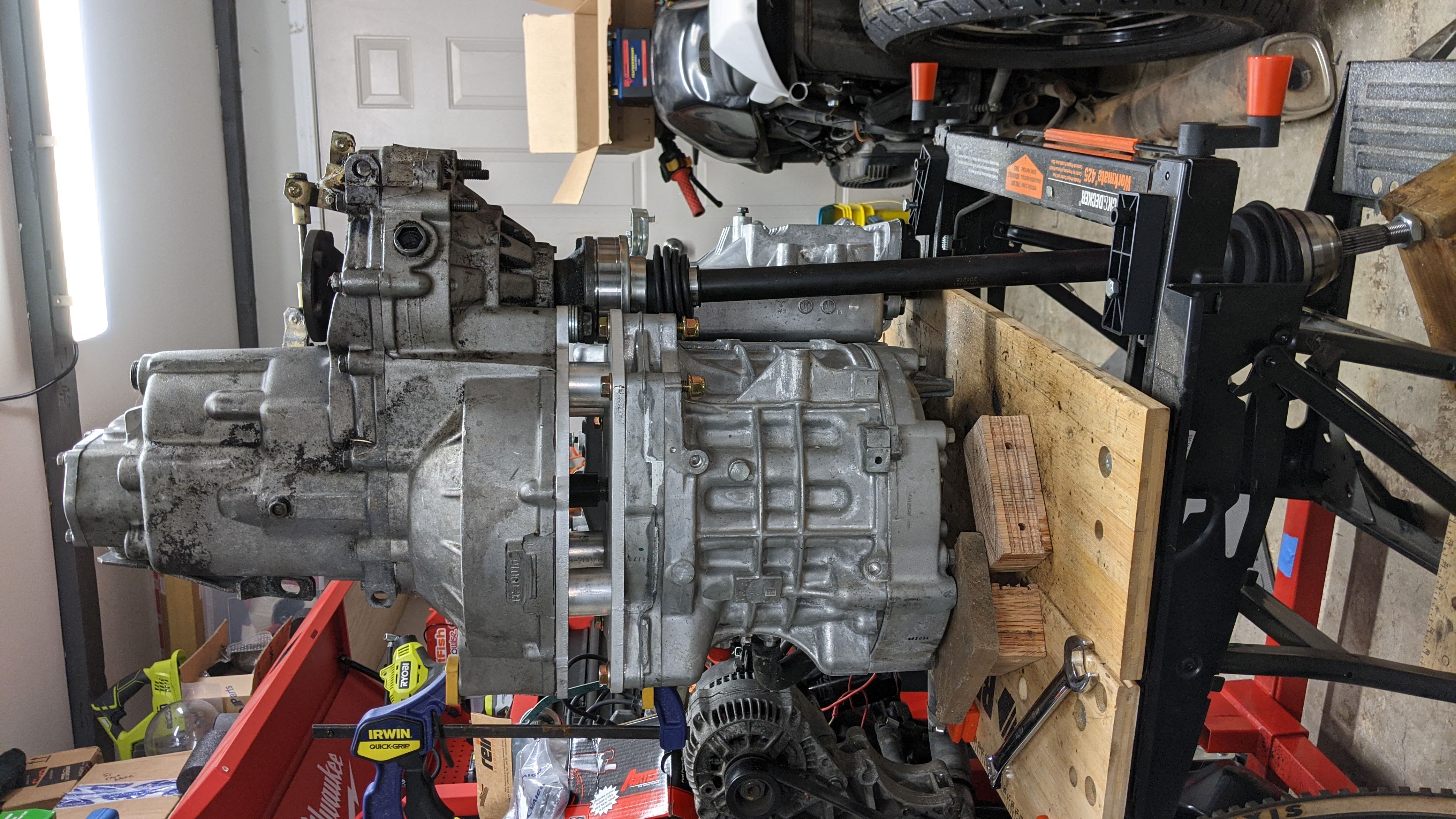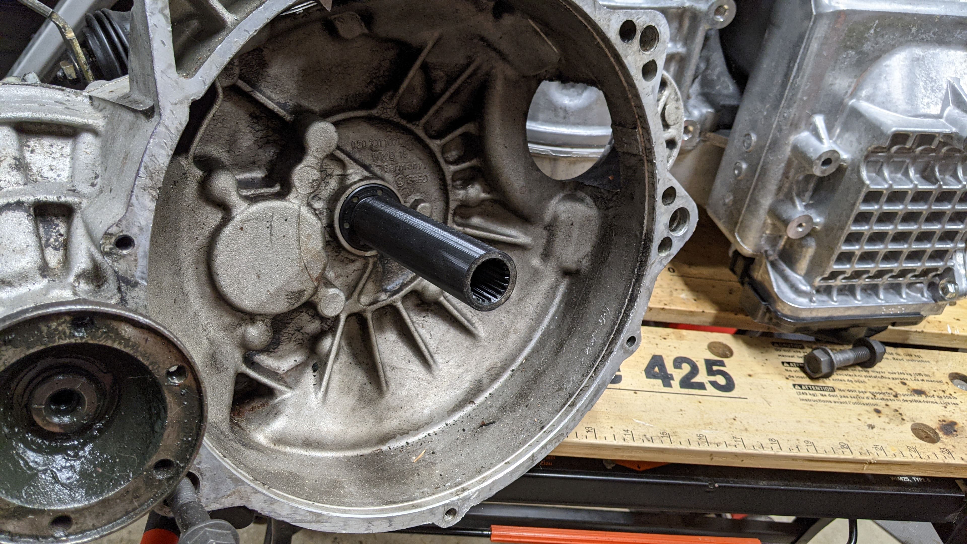 You are planning on using a Leaf setup. Could you post another picture of original gearbox. Trying to see if a Gen2 transaxle could work before purchasing Mk1 cabriolet... Apparently it might have to be turned around due to knocking up against radiator. Thanks
