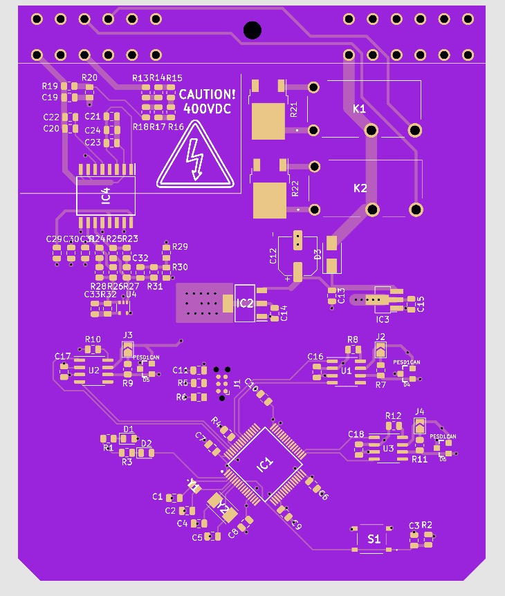 I don't want to run the 400V across the car, that's why I made the volt measurement as an extra circuit board so that it can be installed directly in the juction box right next to the conntactors.