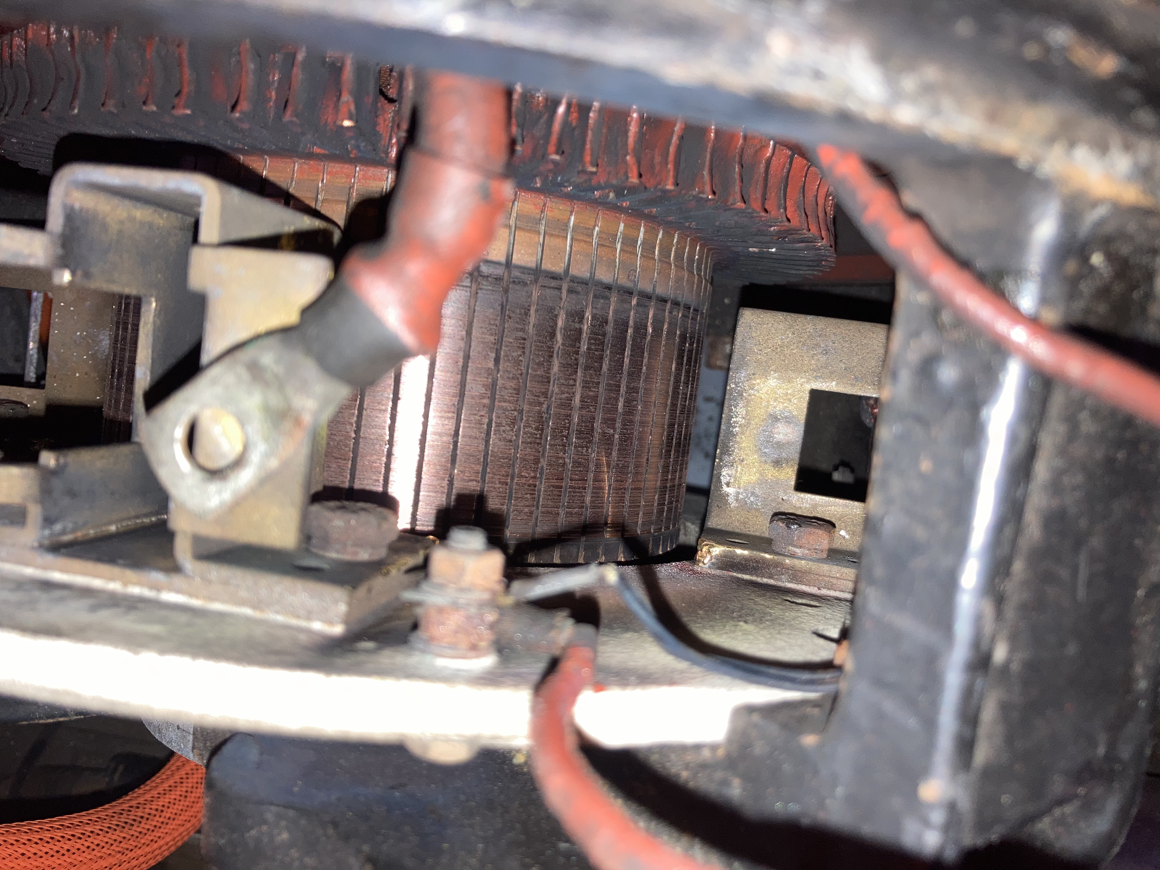 Ev8 wrote: Sat Jul 31, 2021 7:58 pm I have temporary resurrected the dc motor, after cleaning the commutator with a couple of blocks I made that slot in in place of the brushes with 800grit paper on the ends, turns out it was mostly carbon and not much damage. Resurfaced the brushes and repaired the brush retainers with new springs, also found and replaced a crimp on one of the wires feeding the brushes that had burnt off!