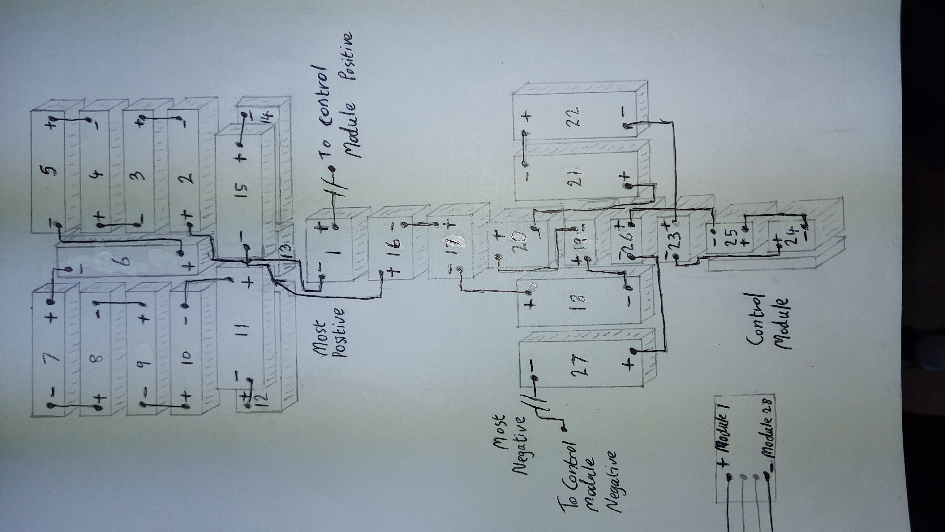 I've traced the pixie path and drawn a diagram to show the battery modules from number 1 (Most Positive) to number 28 (most negative) I still need to dismantle the pack and label the BMS and CAN cables so wish me luck on that.