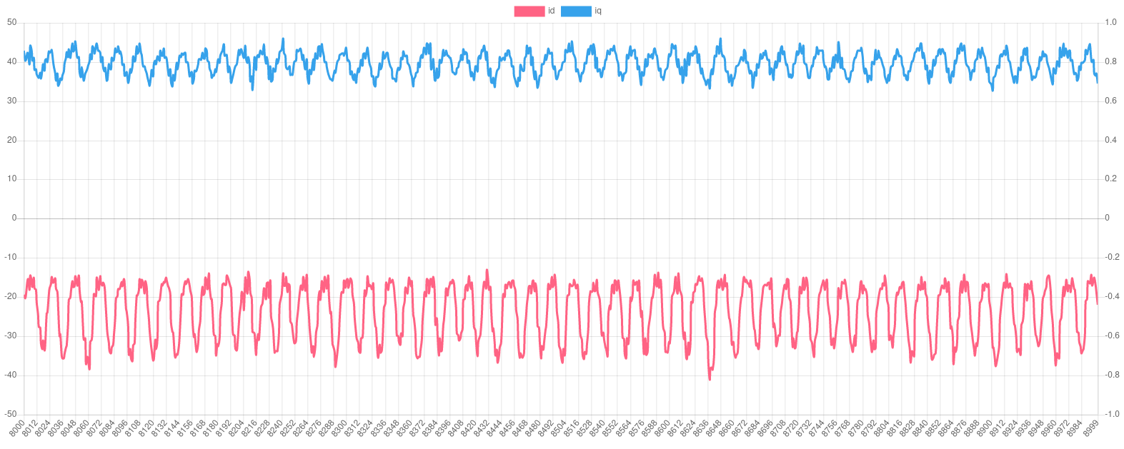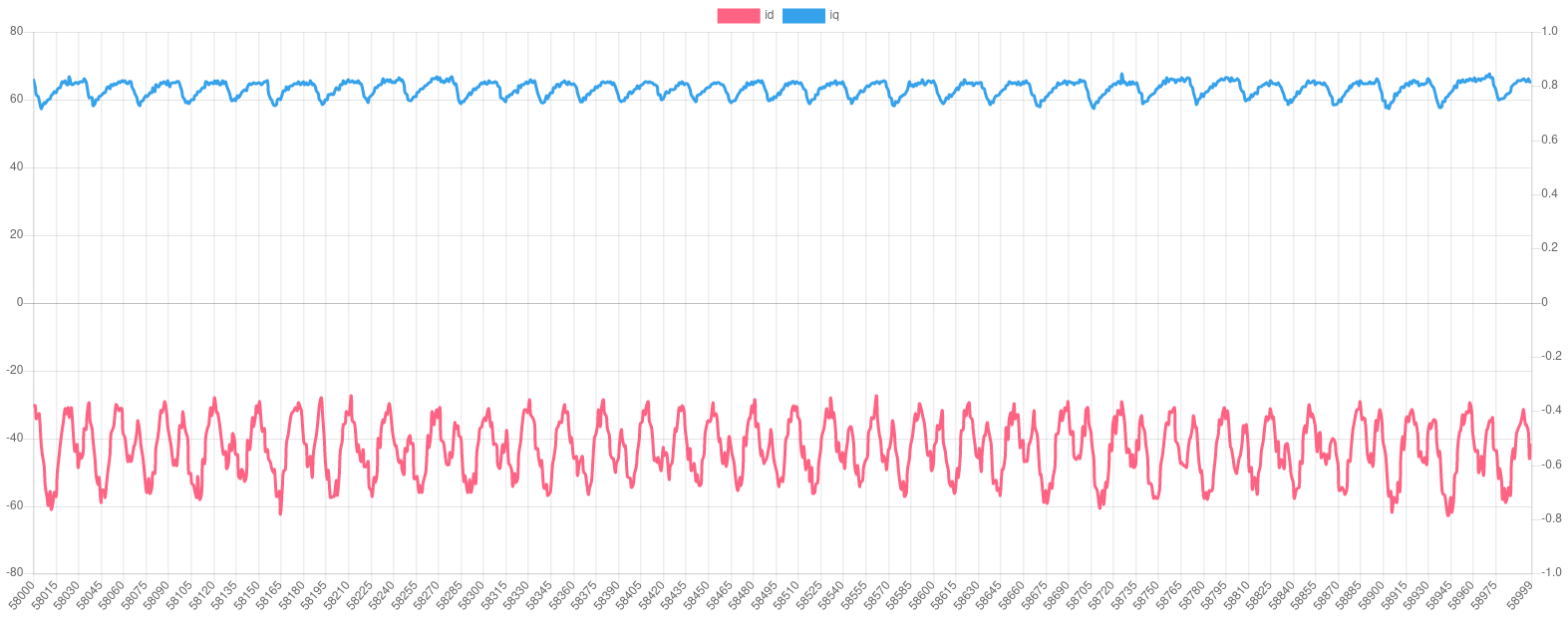 Also took an id/iq plot while slightly pushing against the handbrake. You see the oscillation is less with more filtering.