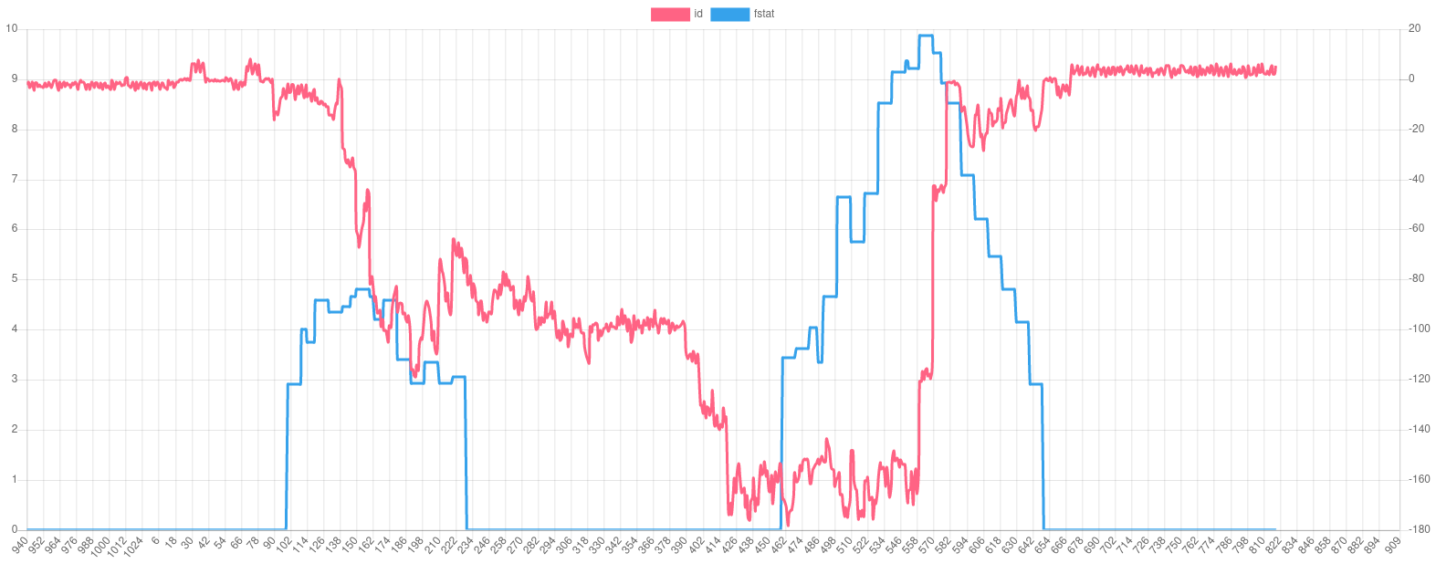 I did find something else which I don't understand. Why does fstat go from 0 to 5 in one step, can't get anything in between. I can get the car moving but 0 fstat. Could this have effect on stuttering at very low speeds? Also, there are some disturbance noticable on angle at least when I drive slowly, seen in above picture as well. Hard to see if I go any faster.