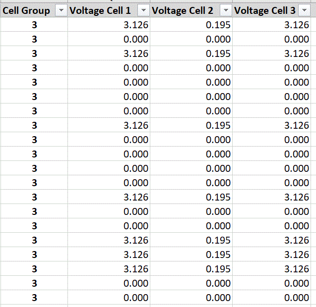 But, something sure seems to be messing up the voltage readings. Remember that I saw the data in 0x332 also show the same 0V as people are getting with the 0x401 messages. So, it seems the BMS really does think those cells are dead when it measures them... sometimes. Other time it seems fine?!