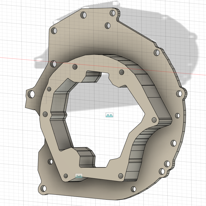 I have now designed the adaptor plates to mate the motor and gearbox. Planning to get some mockups made in either plywood or just thin sheet steel to make sure the holes all line up. Then I can make up a shaft connector with a couple clutch hubs.