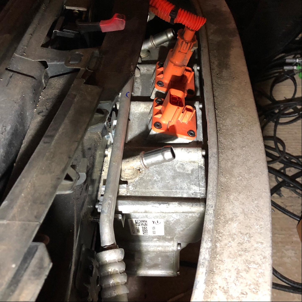 The weight of the Tesla drive unit and battery bank that the frame system is supporting is connected to the bolt holes of the original front engine mount (and rear mounts). The whole system is still less than 100kg lighter than what the same bolt holes were supporting with the OEM ICE.