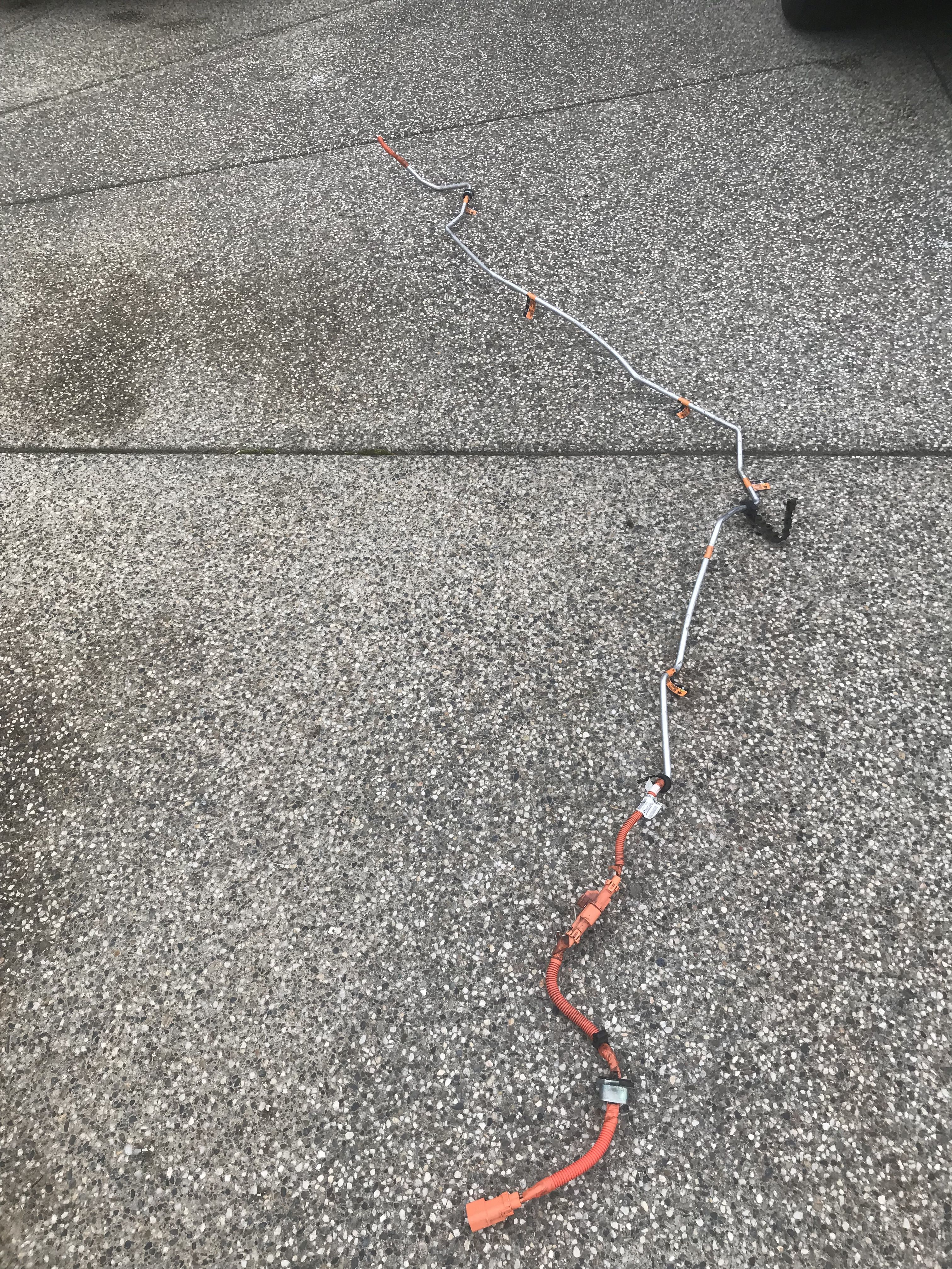 and this is the gen 1 Converter to High Voltage (HV) "traction" battery cable part # 23432013 it appears to run from the back of the vehicle ie the trunk along the side of the HV battery to the front of it where it plugs in