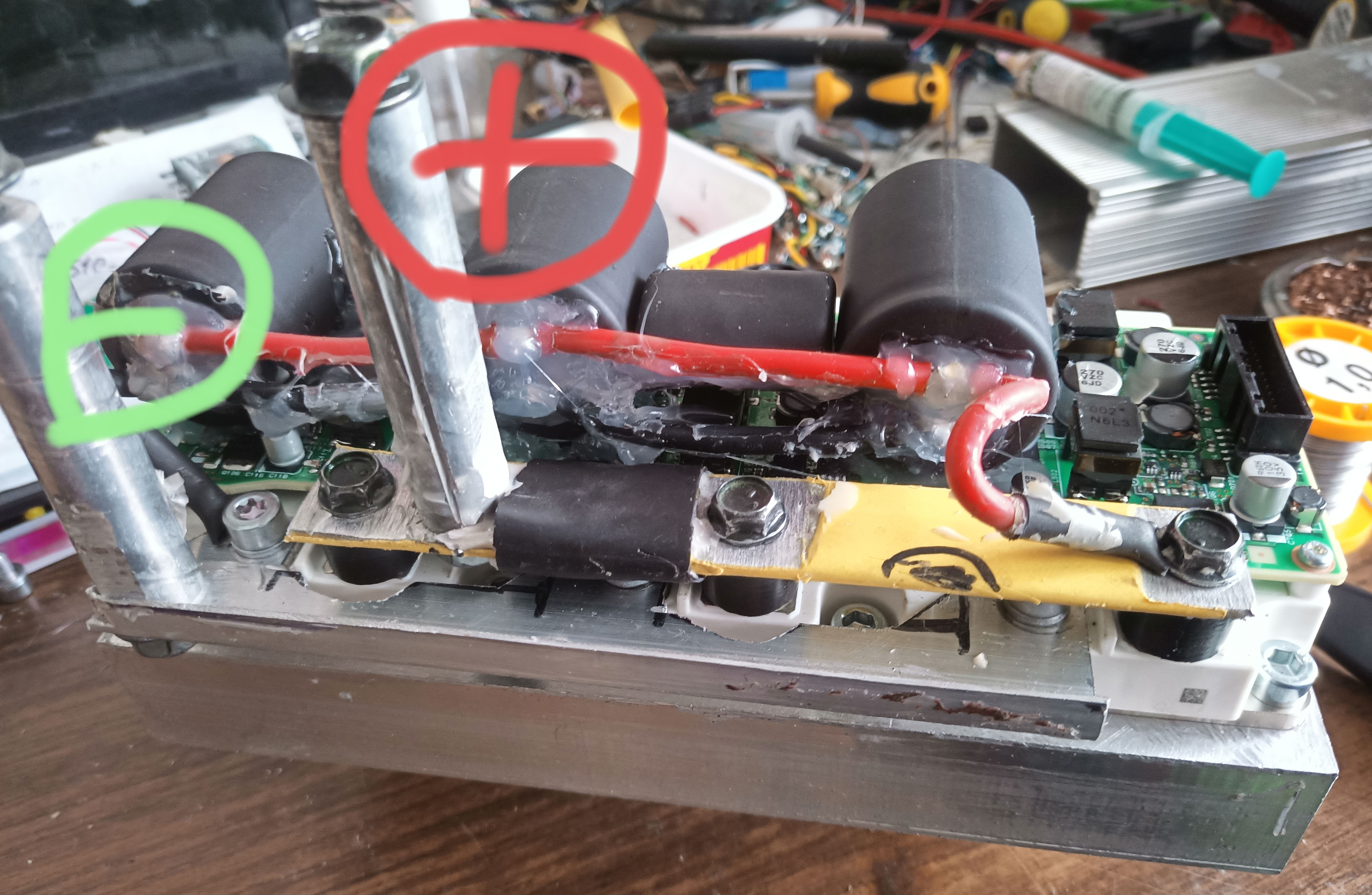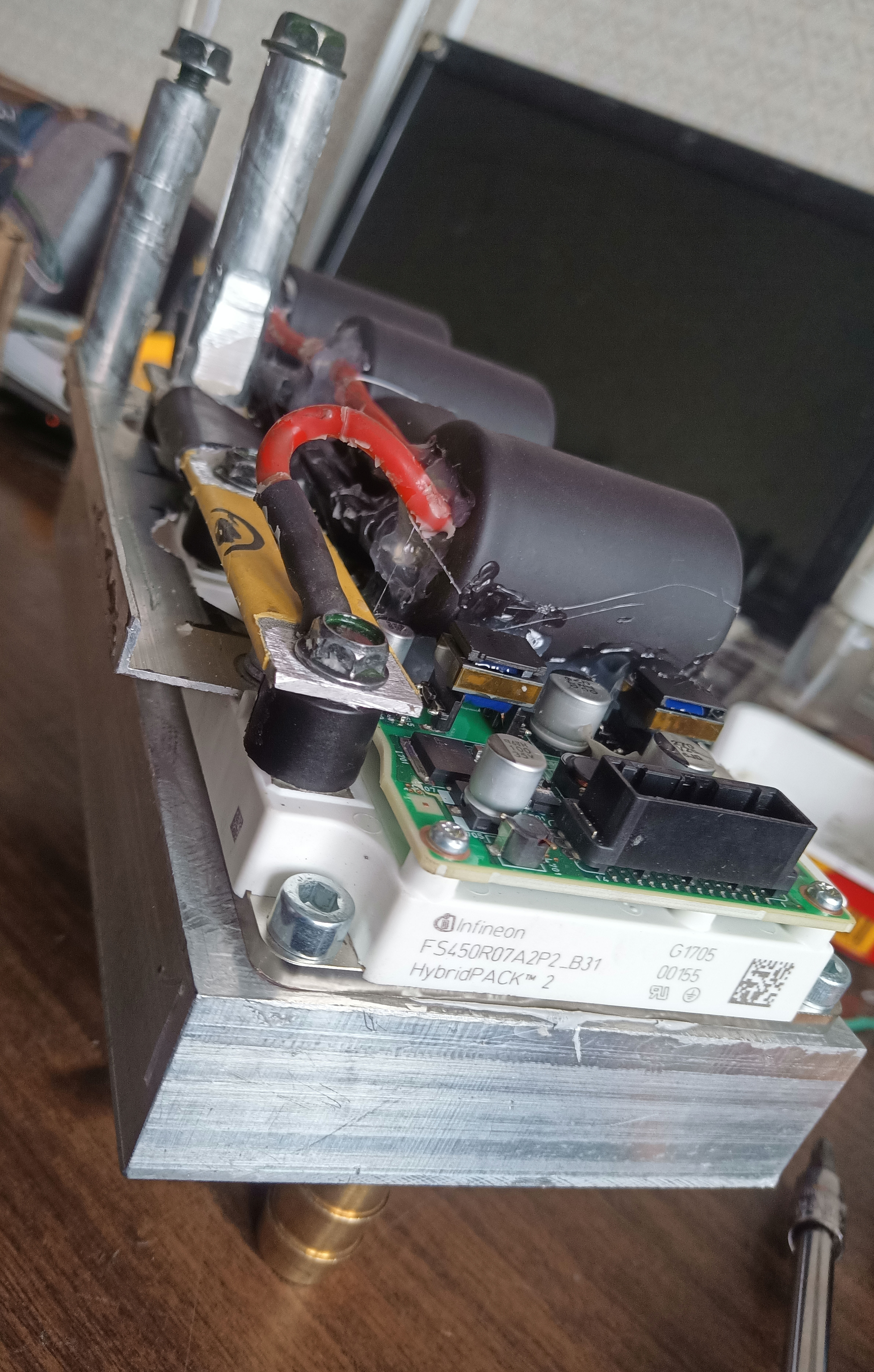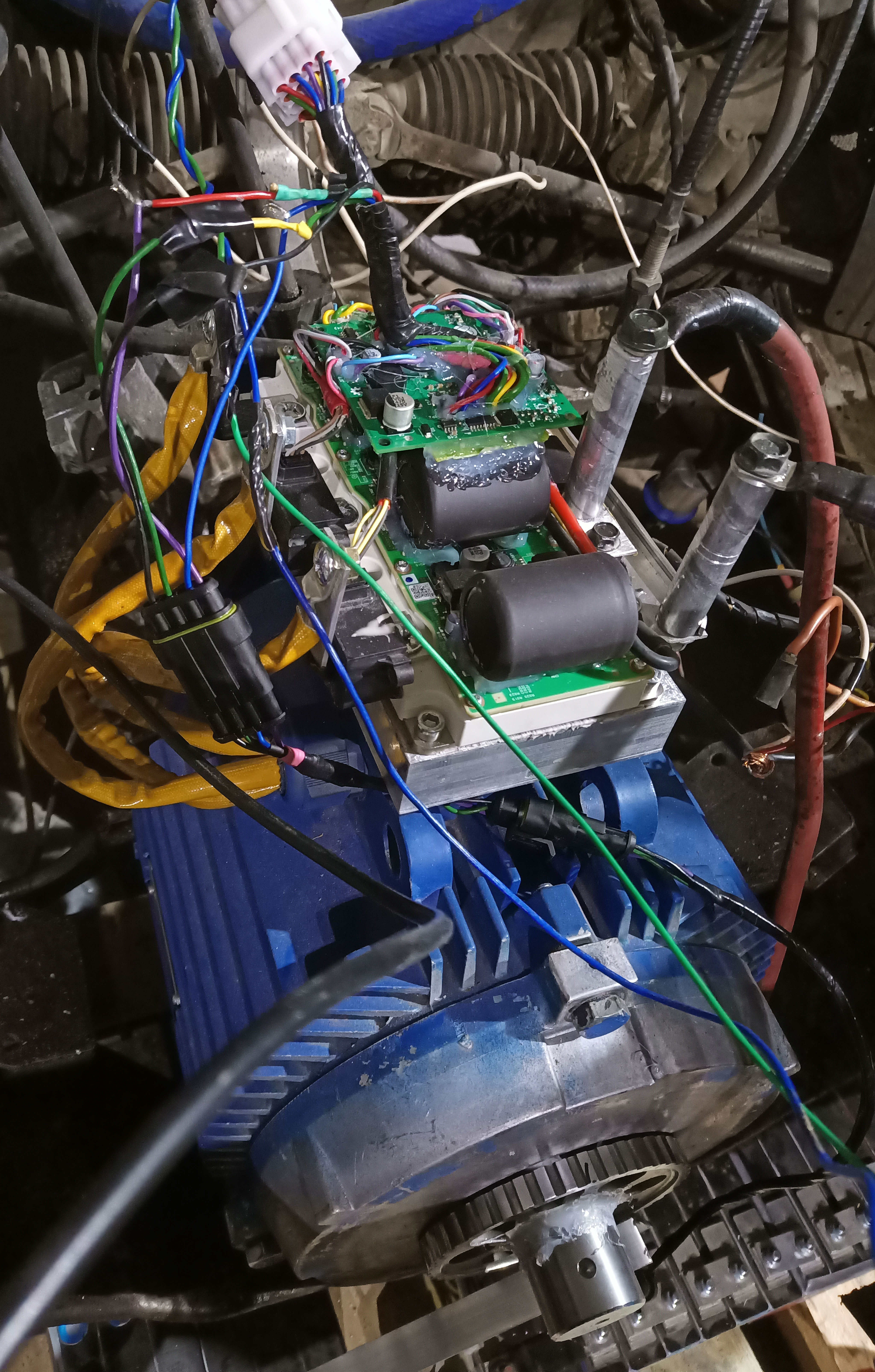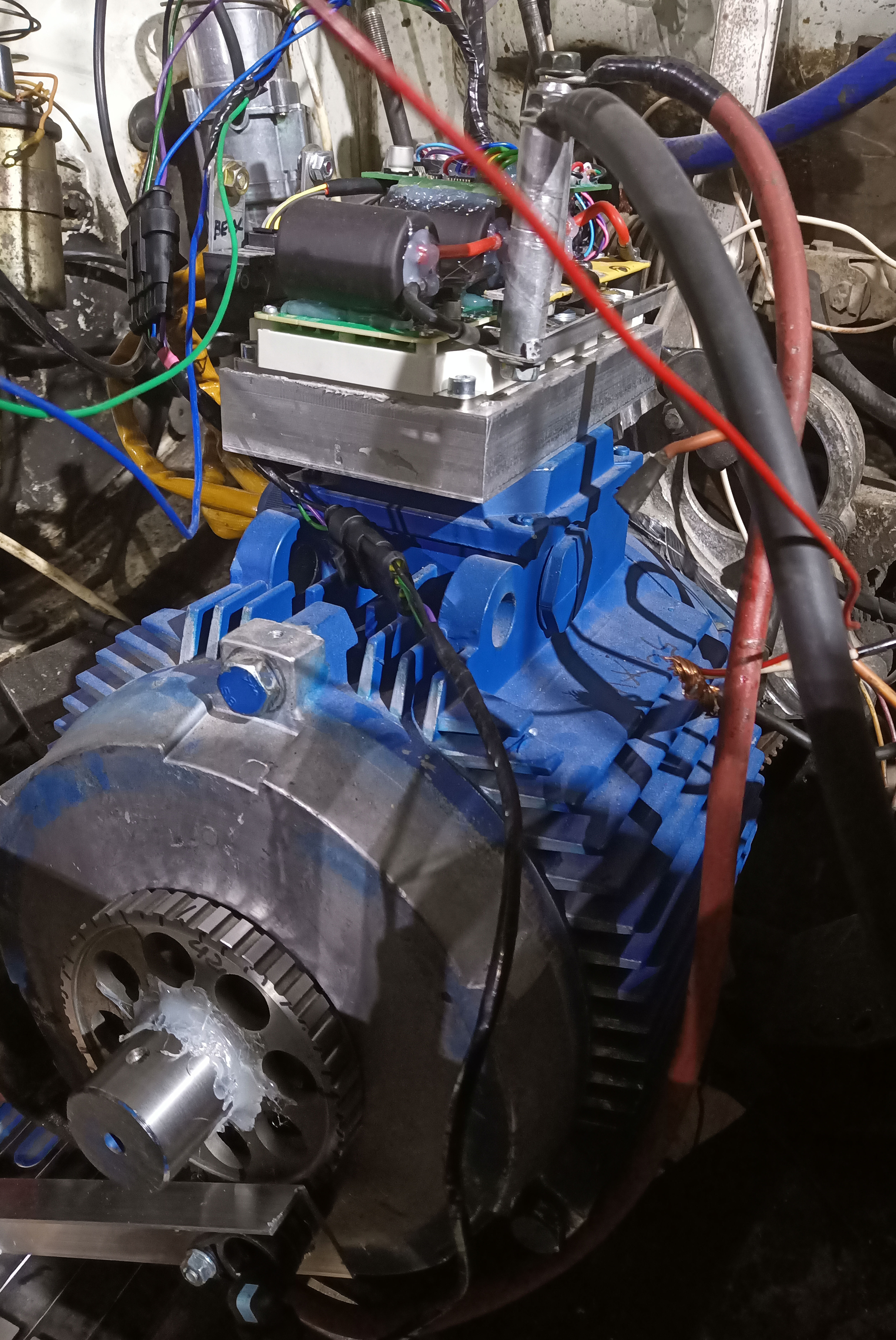 we continue! today, the engine has finally started adequately. there are unnecessary noises, but this is a slight misalignment, the motor is not fixed at all yet and its shaft rests on a bearing in the connecting plate. one time I even got the error current limit (I think when I assemble a high-voltage battery, I will have to play with the settings)