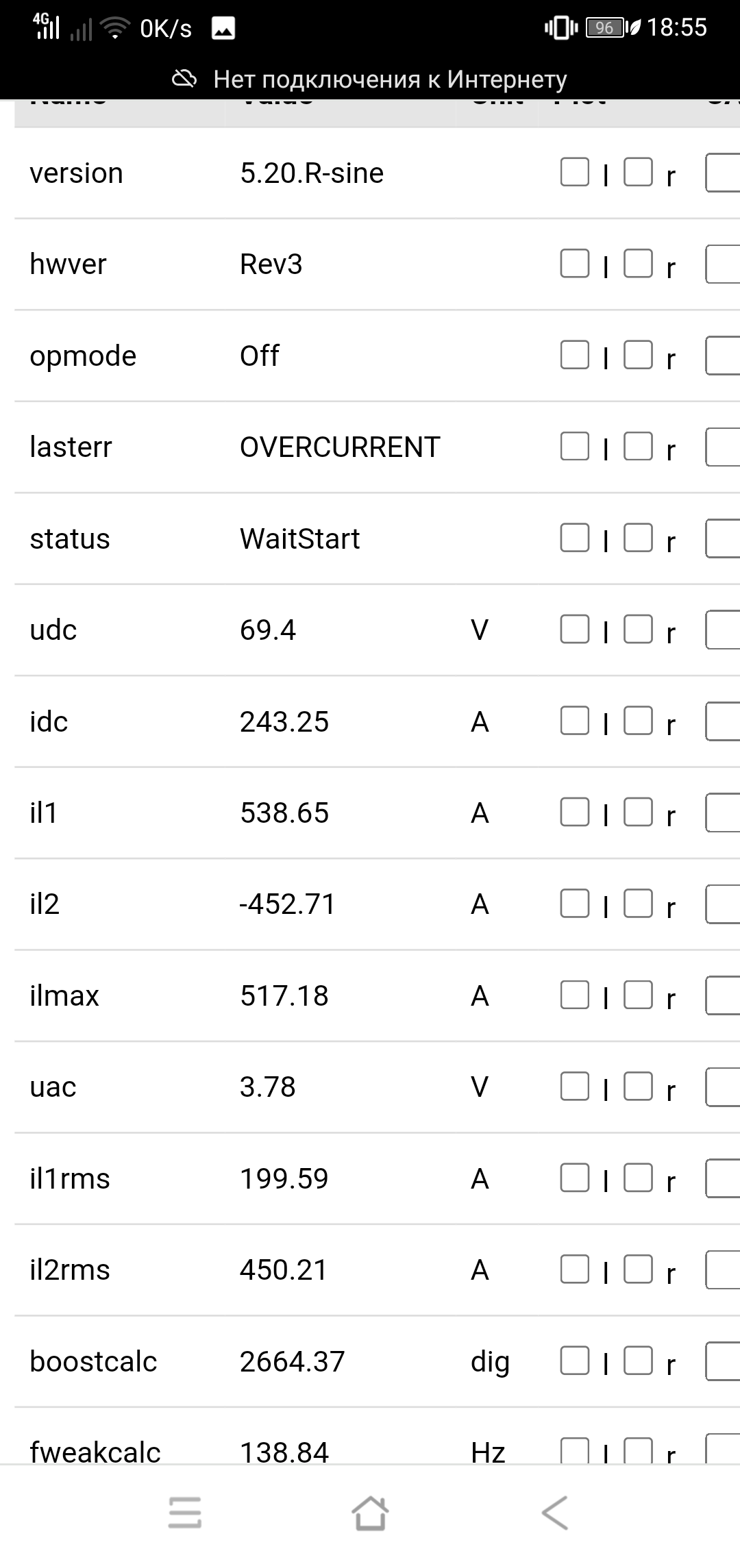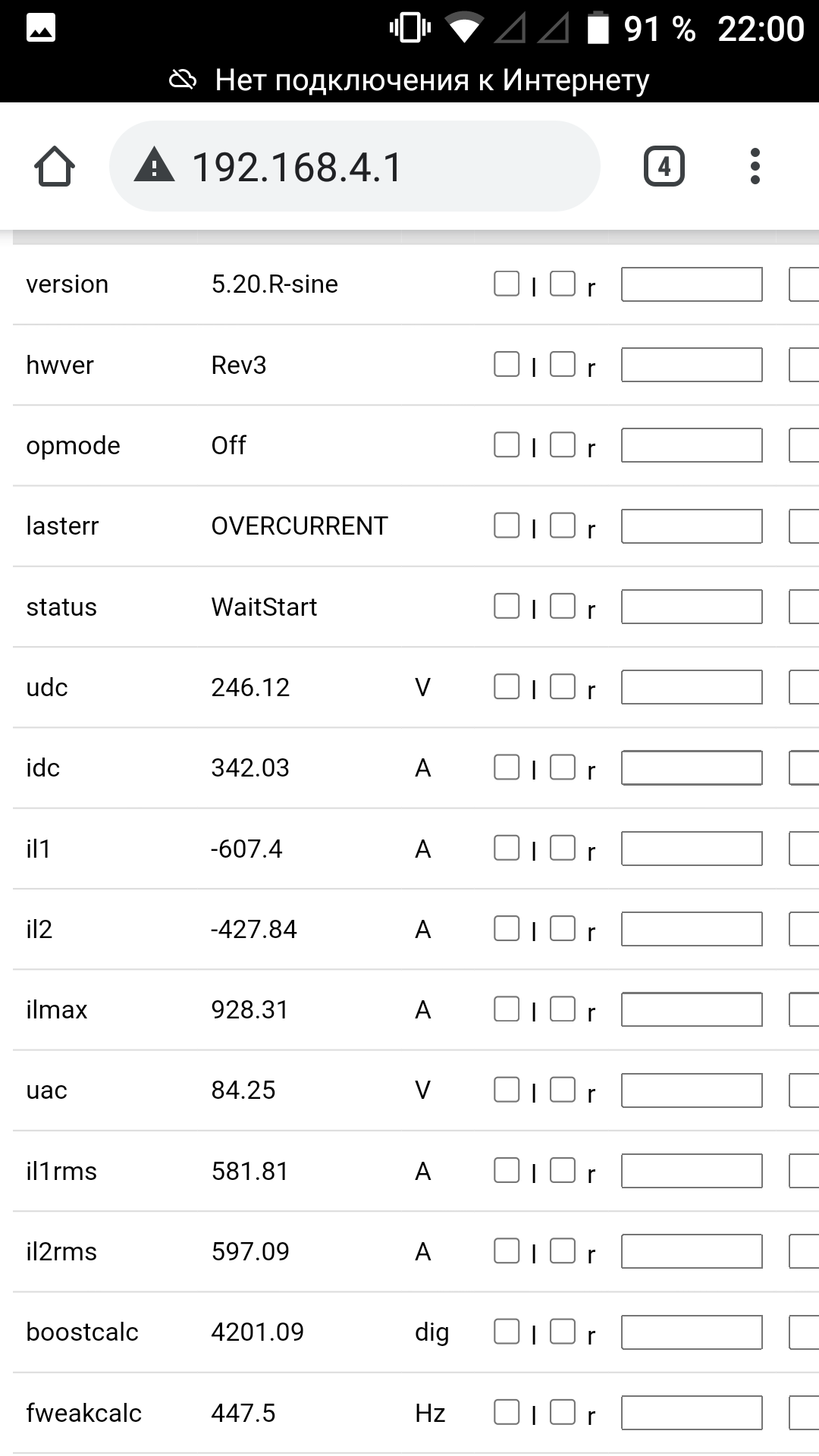 for such an arrangement of current sensors as I have in the controller, it is necessary to use NEGATIVE calibration of sensors and current limits. in order for the values to be positive, the following photo.