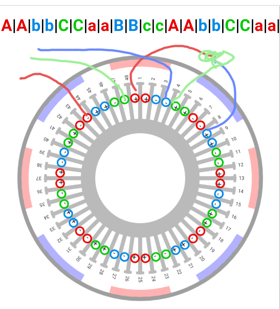 as you can see, for the acim motor, it is necessary that all three beginnings of the coils have the same current direction