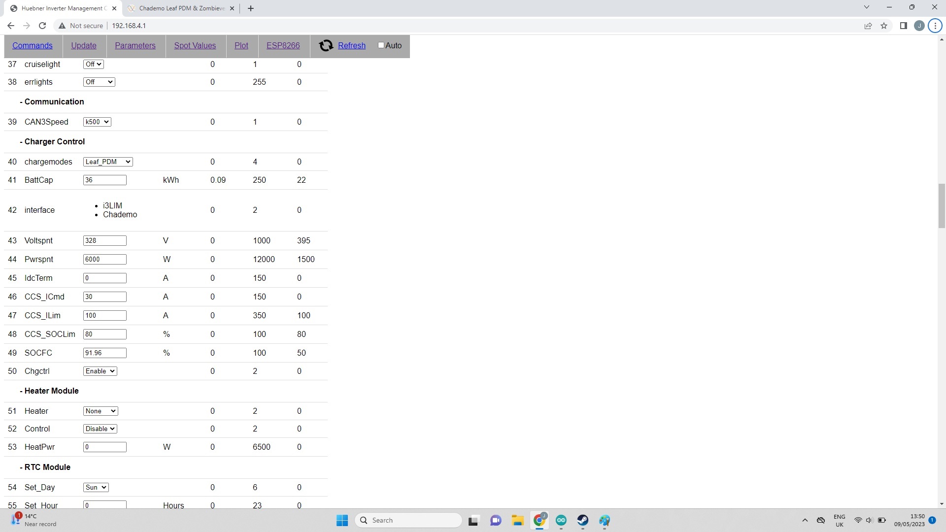 So now on to the next challenge, As it is, the way the CHAdeMO is integrated means that only AC OR CHAdeMO charging will work at one time. It requires a change of setting for the alternate method to be used. For both to work we need the Zombie to essentially have two charge modes at once, so it can look for the Digi input for the CHAdeMO and also the Can signal for AC...