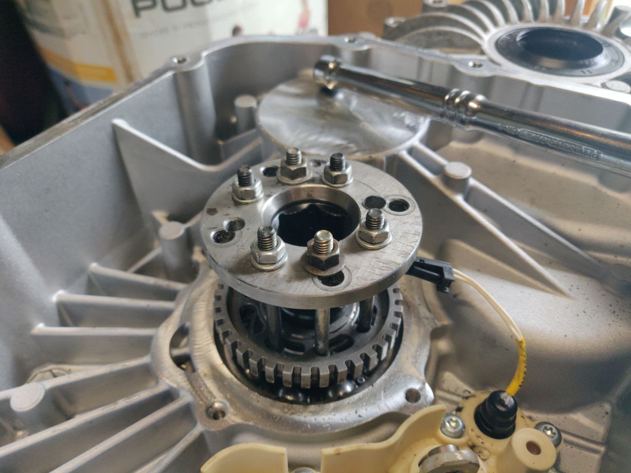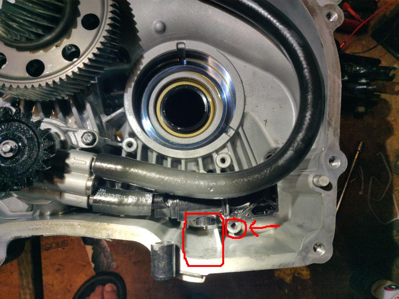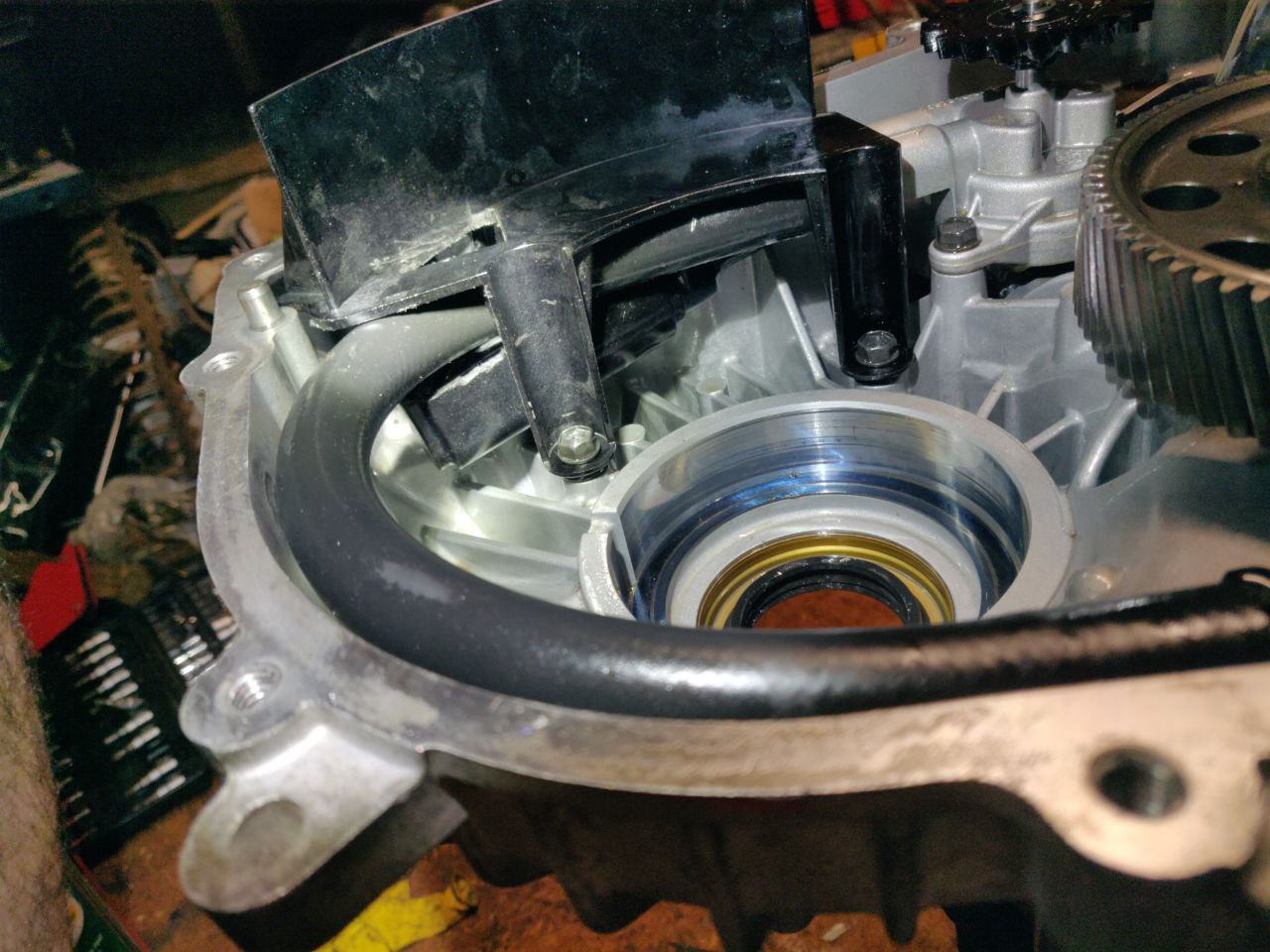 The next step is to do the messy job of modifying the OIL pump.