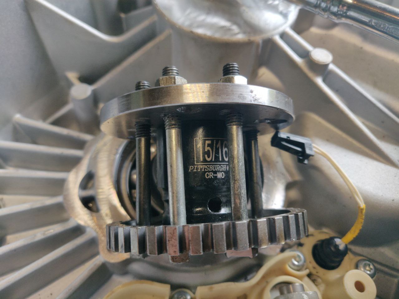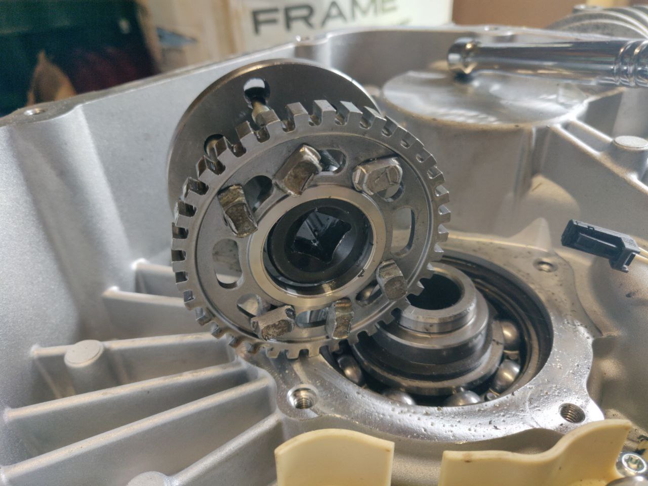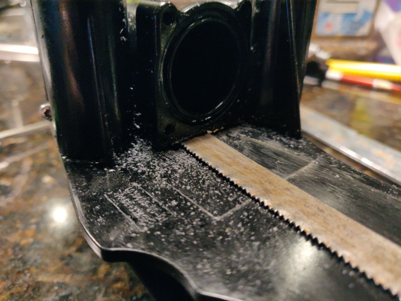 The next step is to do the messy job of modifying the OIL pump.