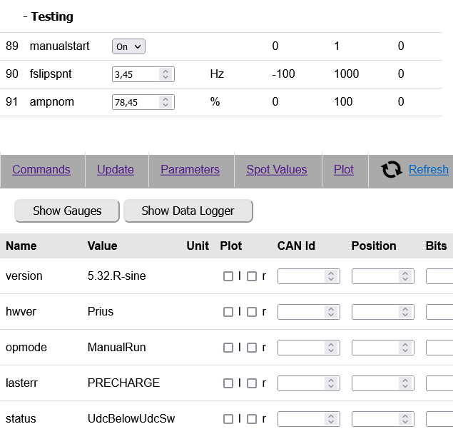Name Value Unit Plot CAN Id Position Bits Gain Map to CAN